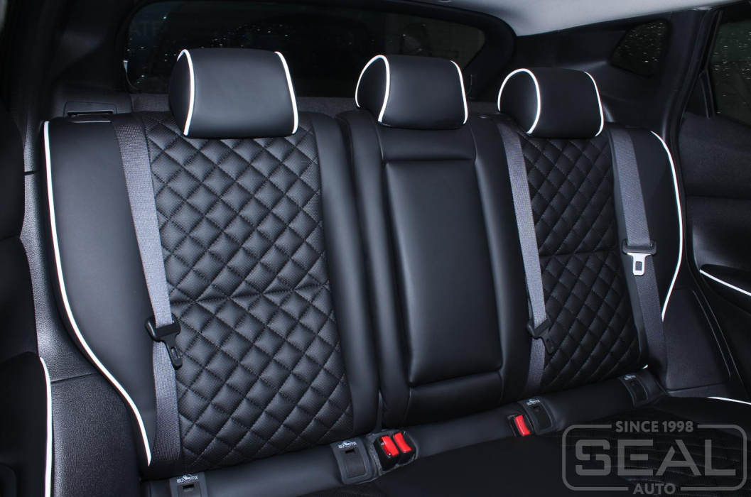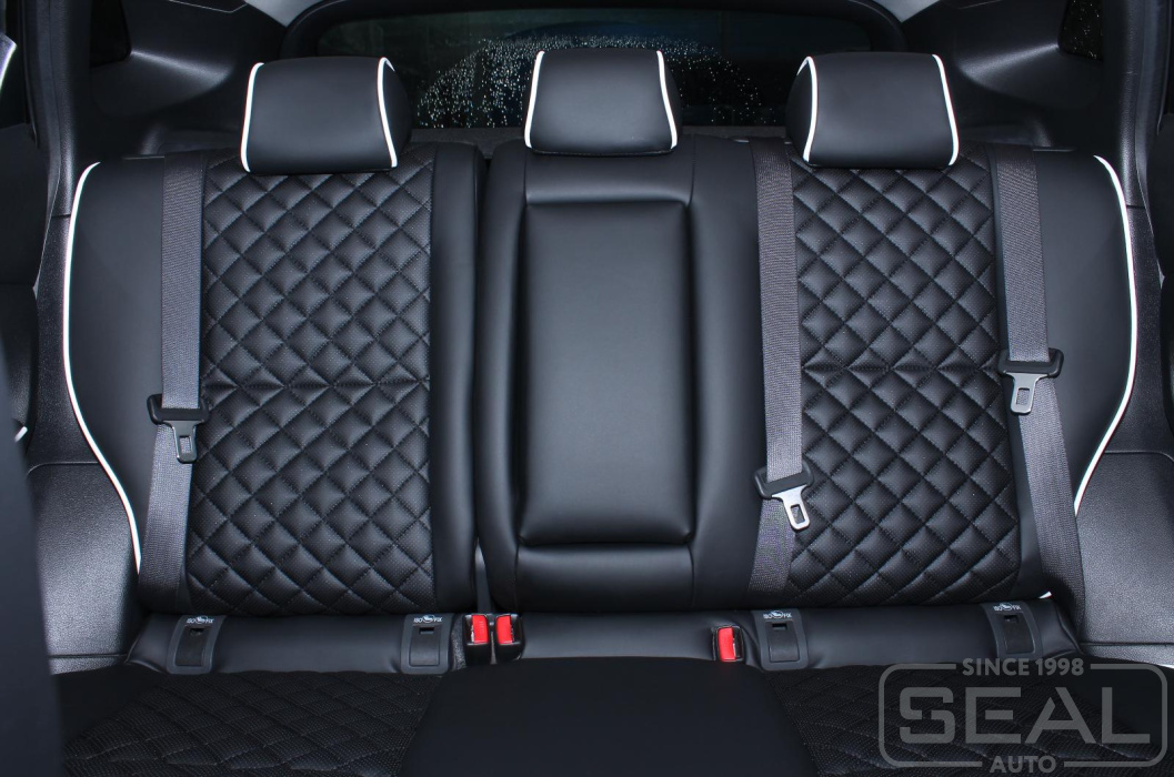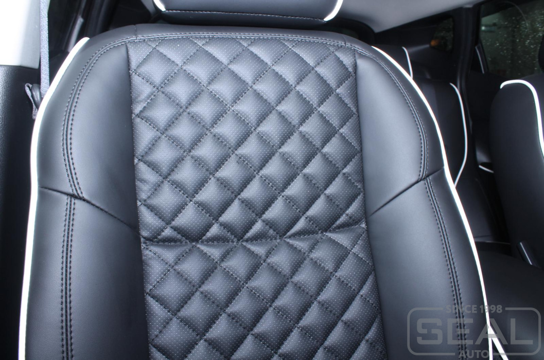 Перетяжка сидений, подголовников и переднего подлокотника - 89.000 рублей.