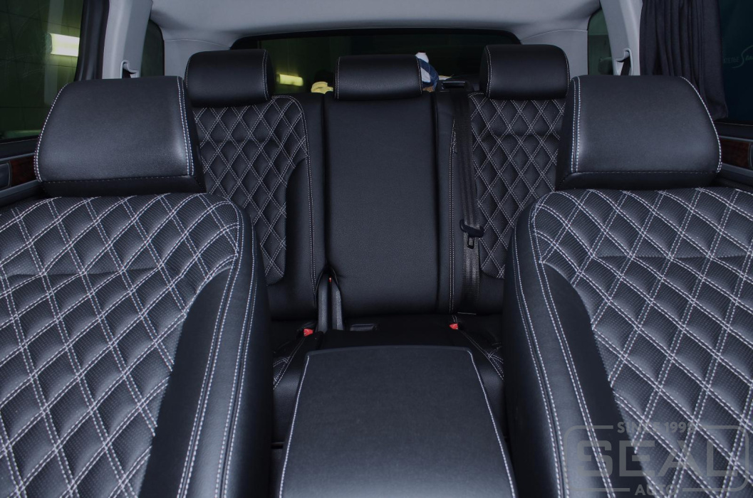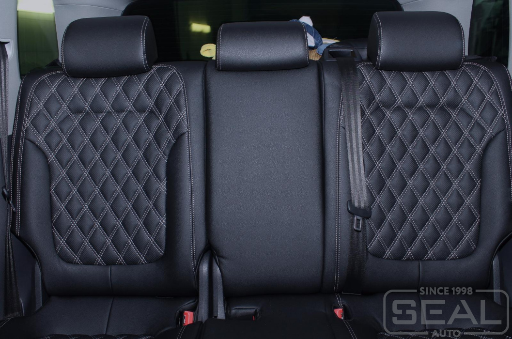 Перетяжка сидений (2 ряда), всех подголовников и подлокотника - 87.000 рублей.
