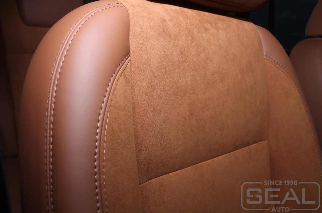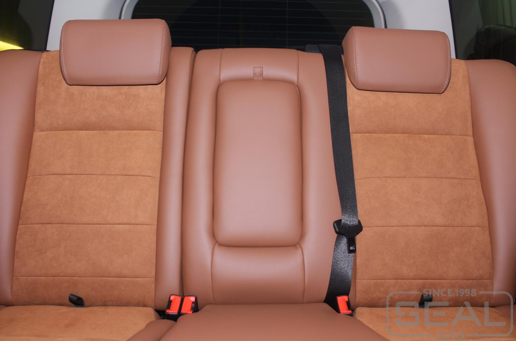 Перетяжка кожей сидений, подлокотников - 87.000 рублей.