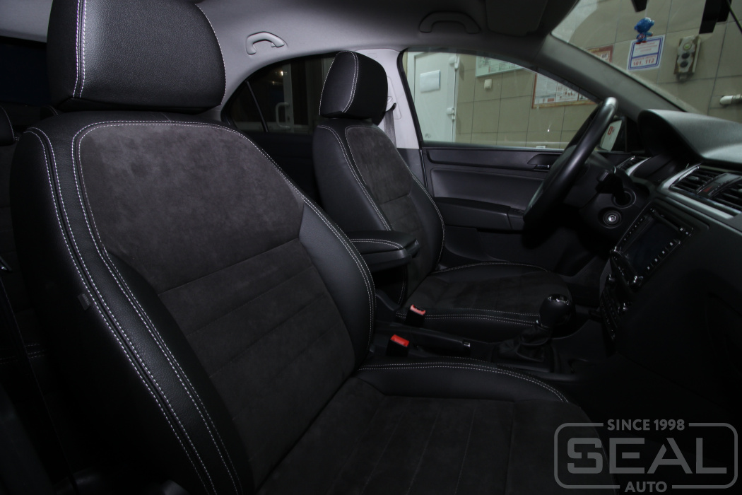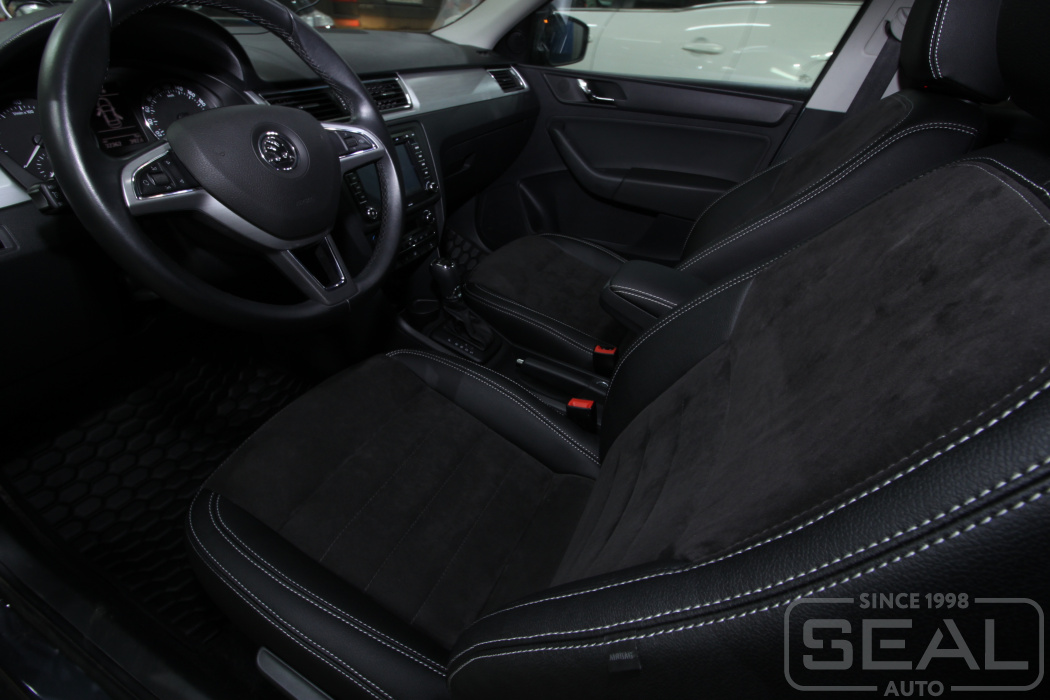 Работа по перетяжке сидений автомобиля Шкода Рапид.