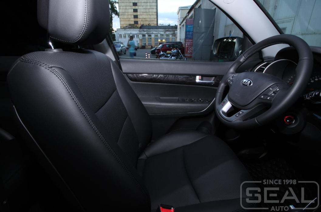 Работа по перетяжке сидений автомобиля Киа Соренто 2-е поколение.