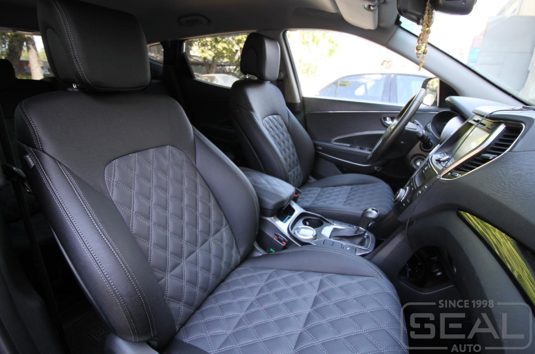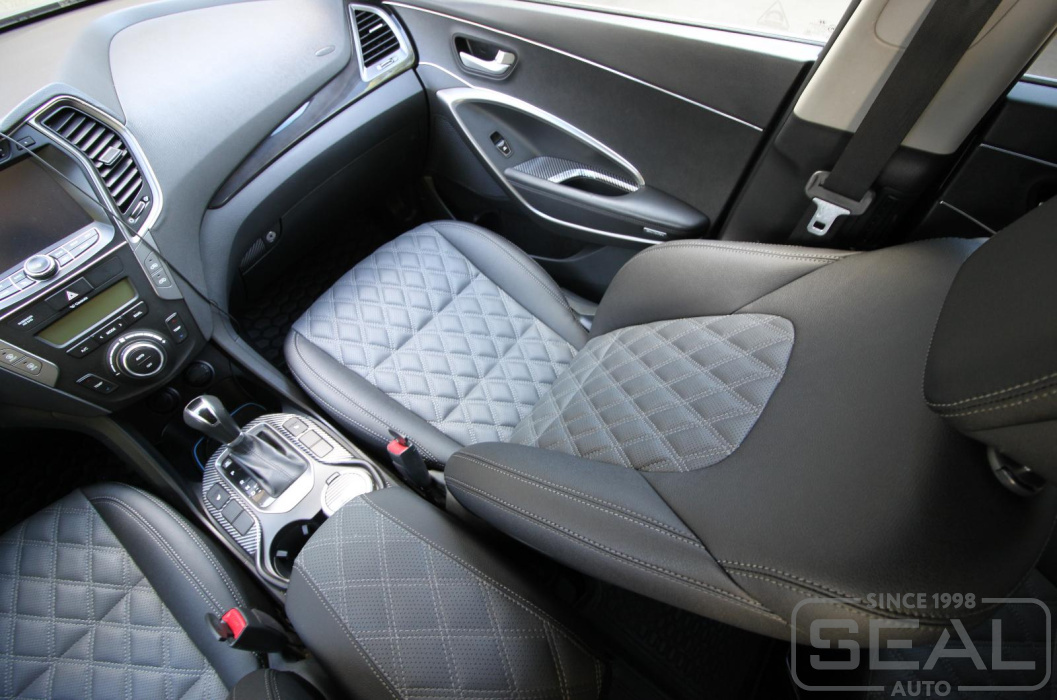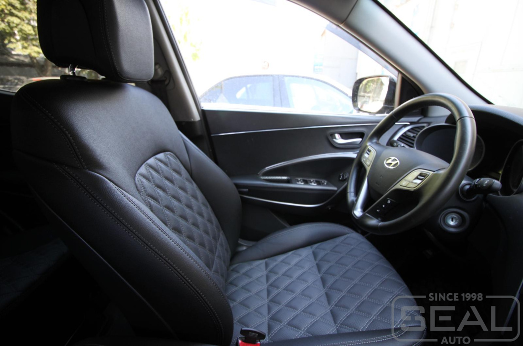 Работа по перетяжке сидений автомобиля Хендай Санта Фе.