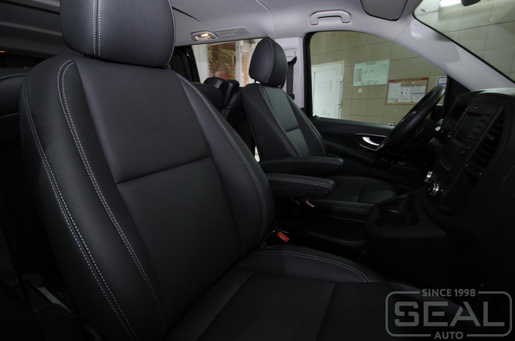 Работа по перетяжке сидений Мерседес Вито (кузов W447, 8-ми местный)