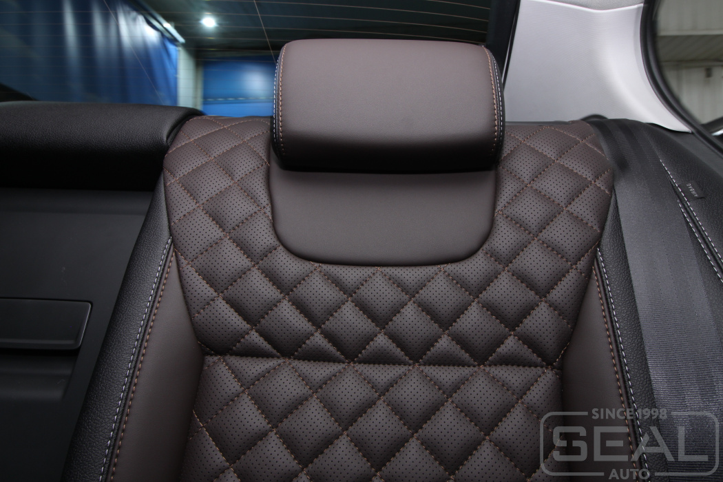 Перетяжка сидений, подголовников и переднего подлокотника - 86.000 рублей.