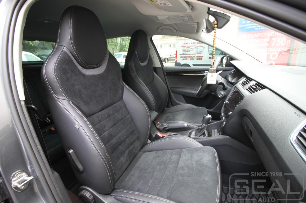Работа по перетяжке сидений Шкода Октавия Black Edition (спортивные сидения).