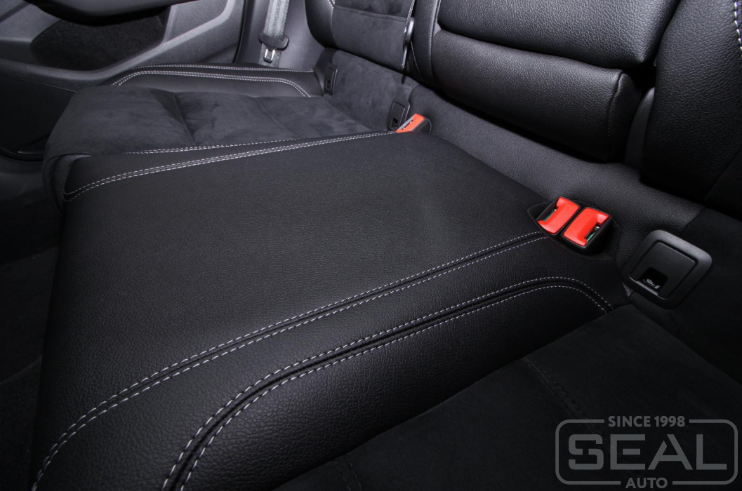 Обтяжка автокресел, подголовников и переднего подлокотника - 83.000 рублей.