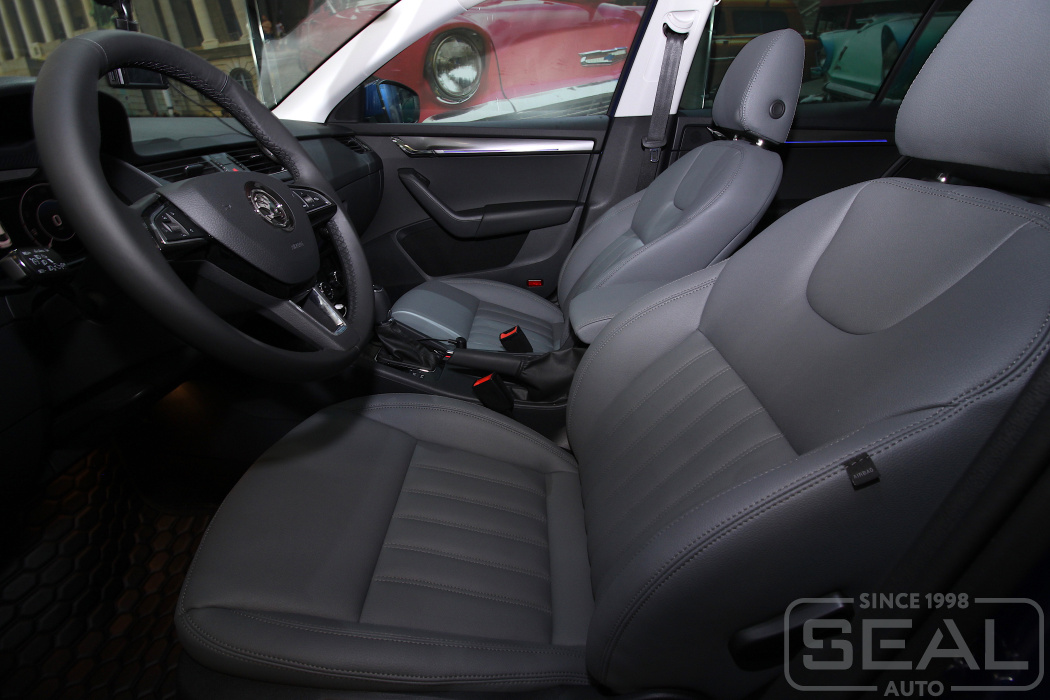 Работа по перетяжке сидений автомобиля Шкода Октавия А7.
