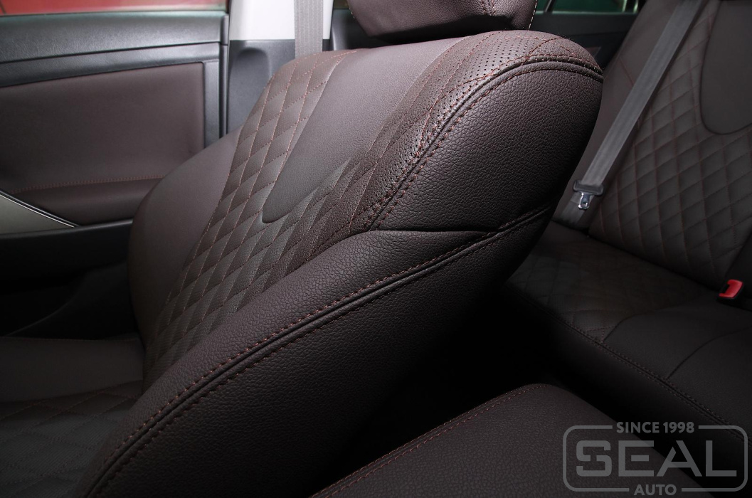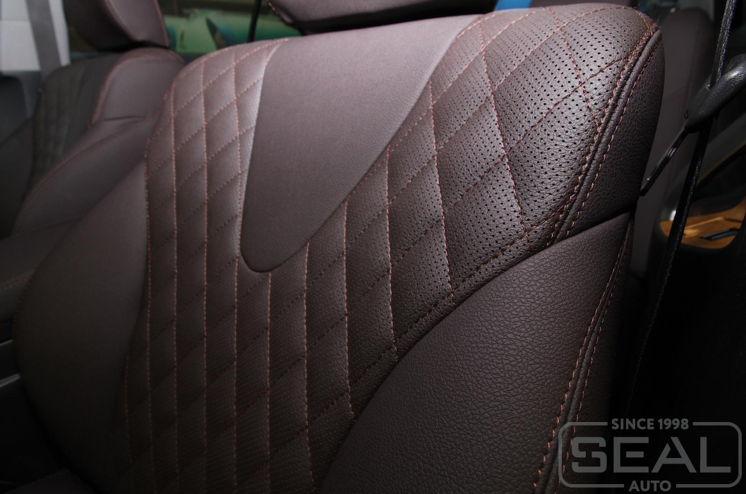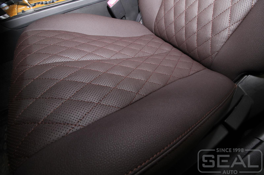 Перетяжка сидений, подголовников (5 штук), обивка подлокотника - 82.000 рублей.
