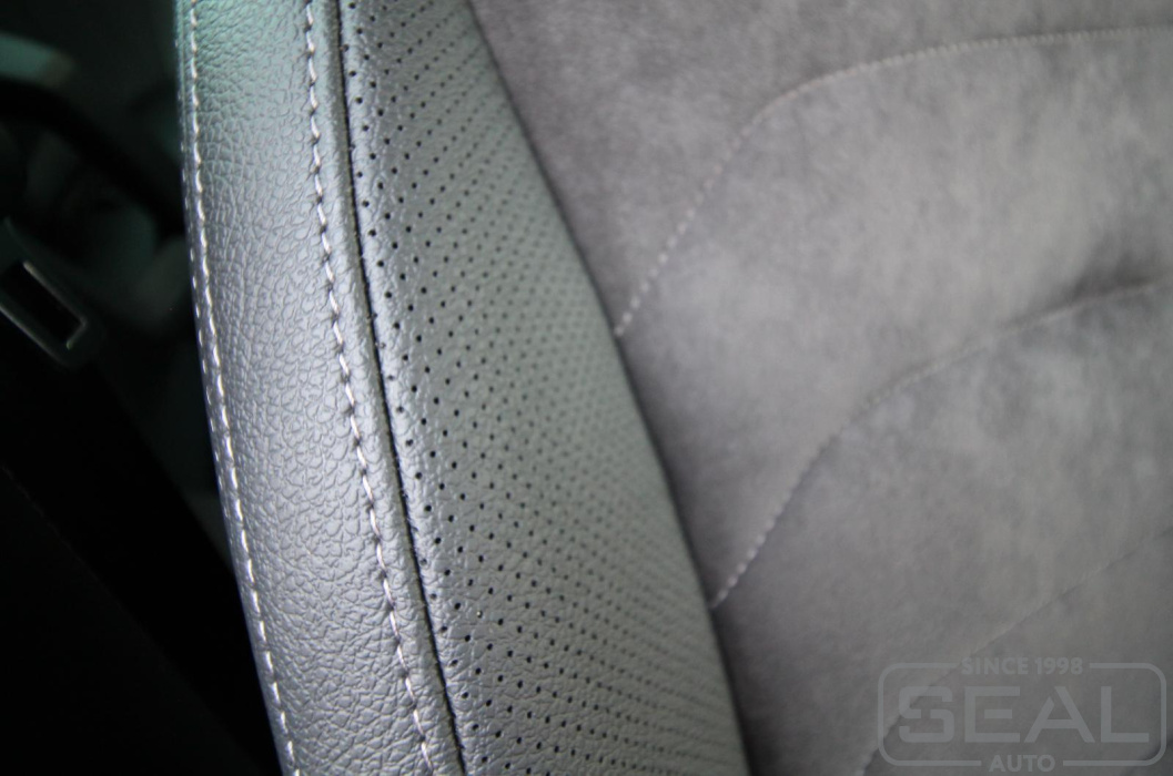 Перетяжка сидений, всех подголовников и переднего подлокотника - 84.000 рублей.