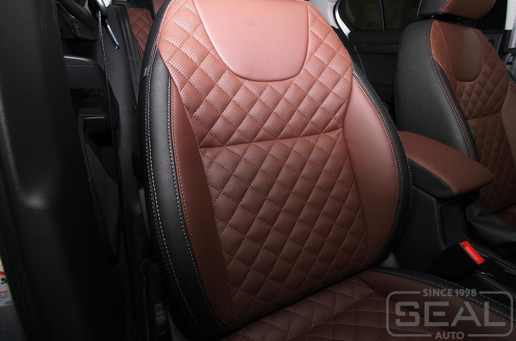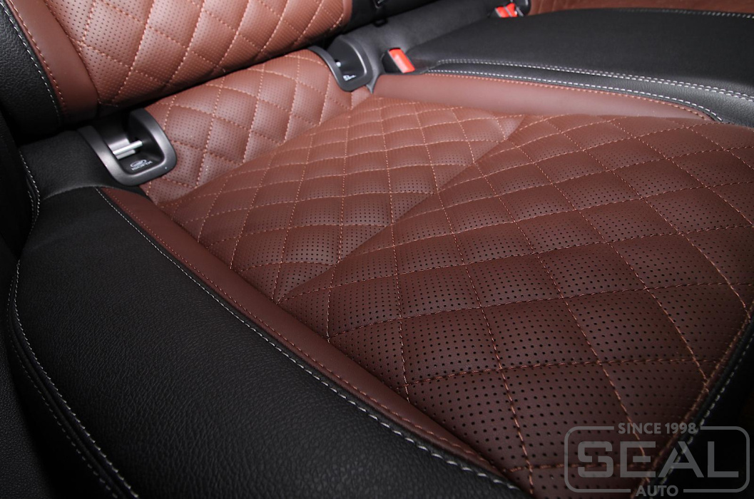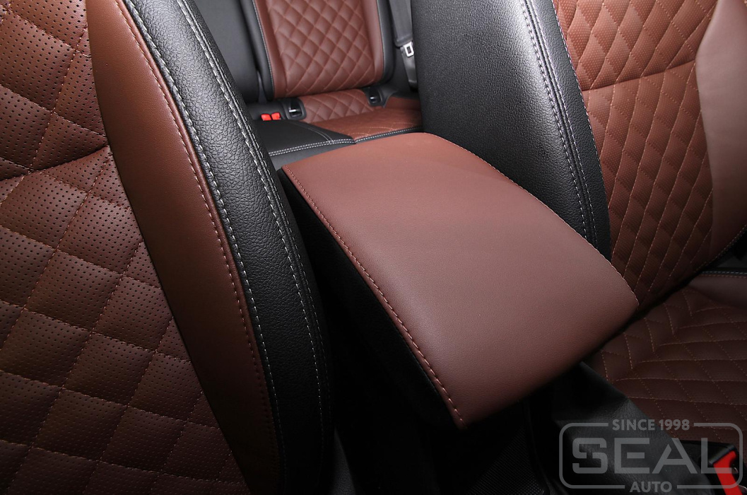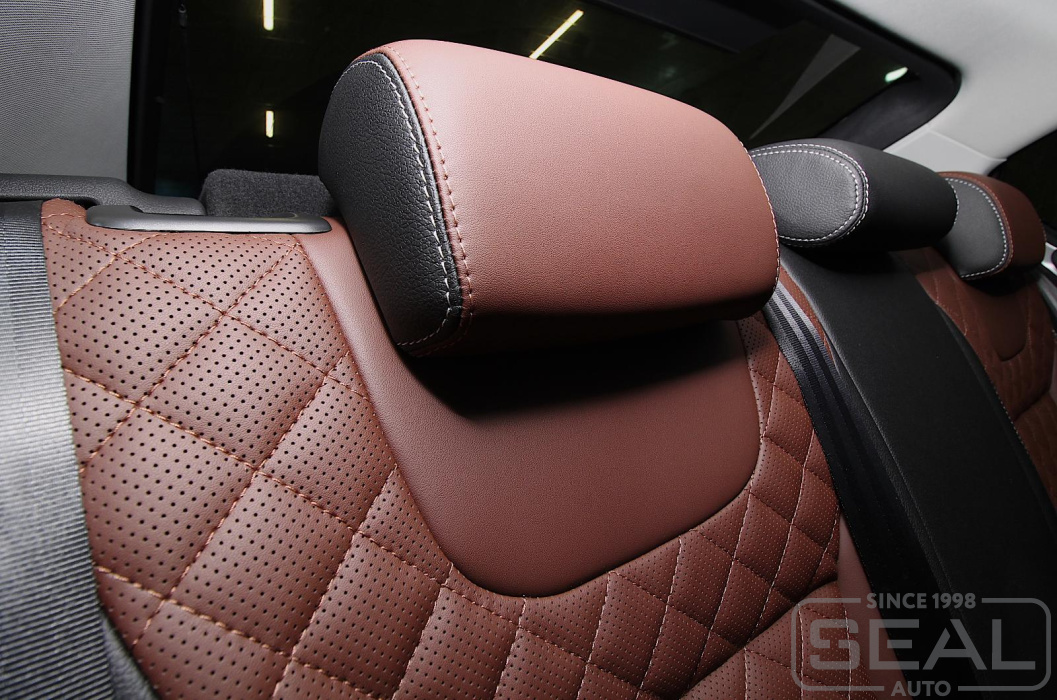 Перетяжка сидений, подголовников и переднего подлокотника - 82.000 рублей.