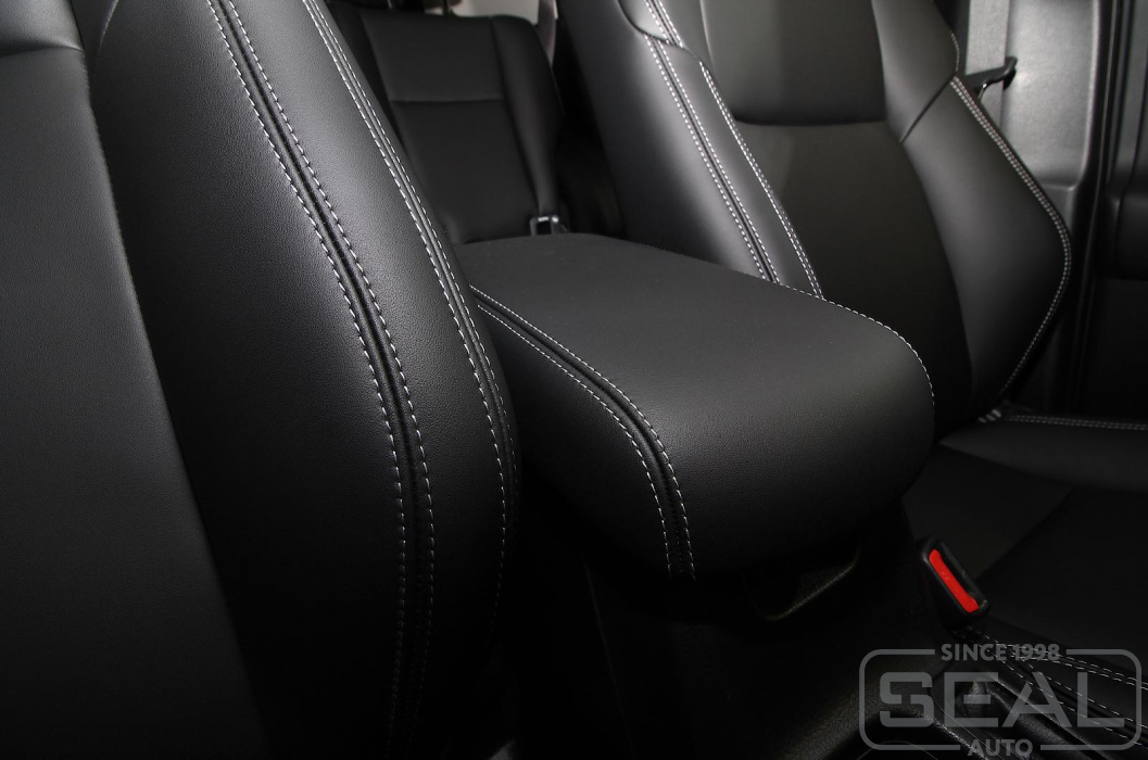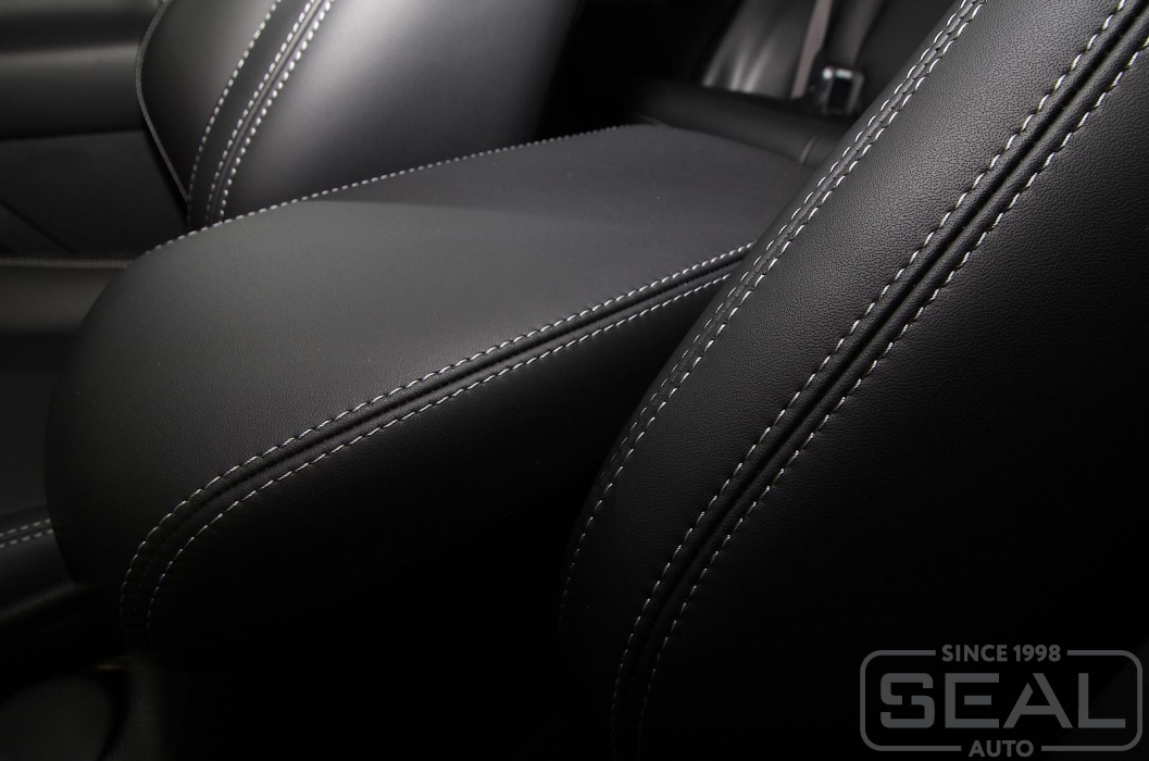 Перетяжка сидений, обивка подголовников и переднего подлокотника - 86.000 рублей.