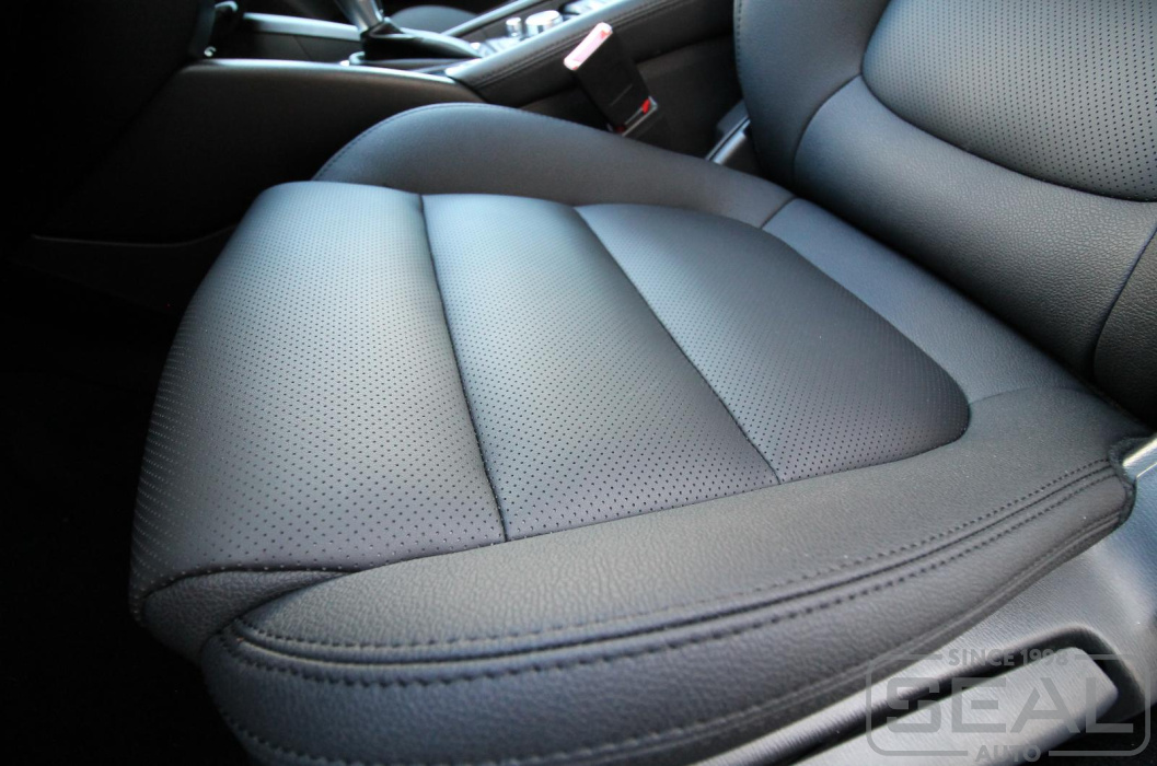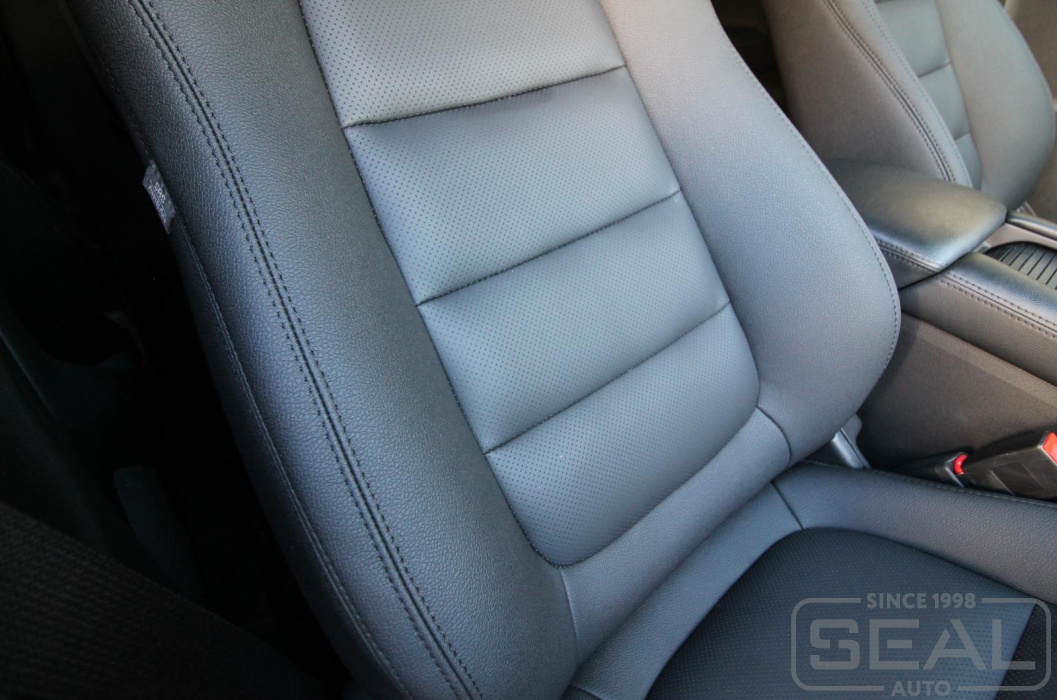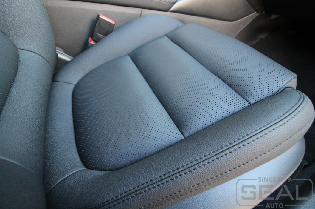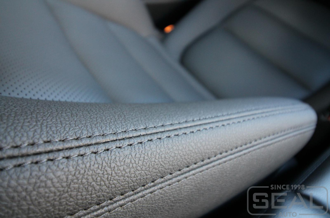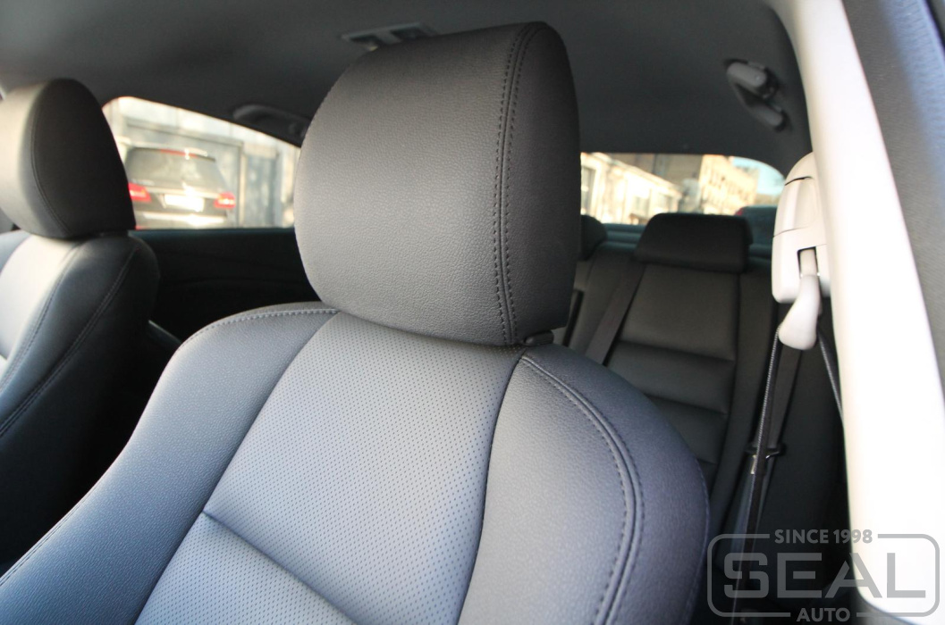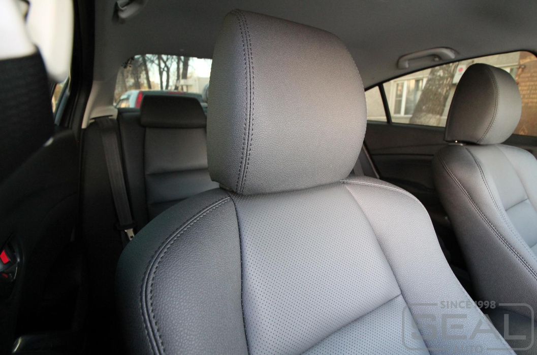 Перетяжка кожей сидений, всех подголовников и подлокотника - 86.000 рублей.