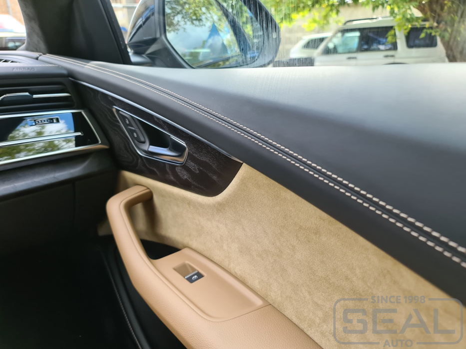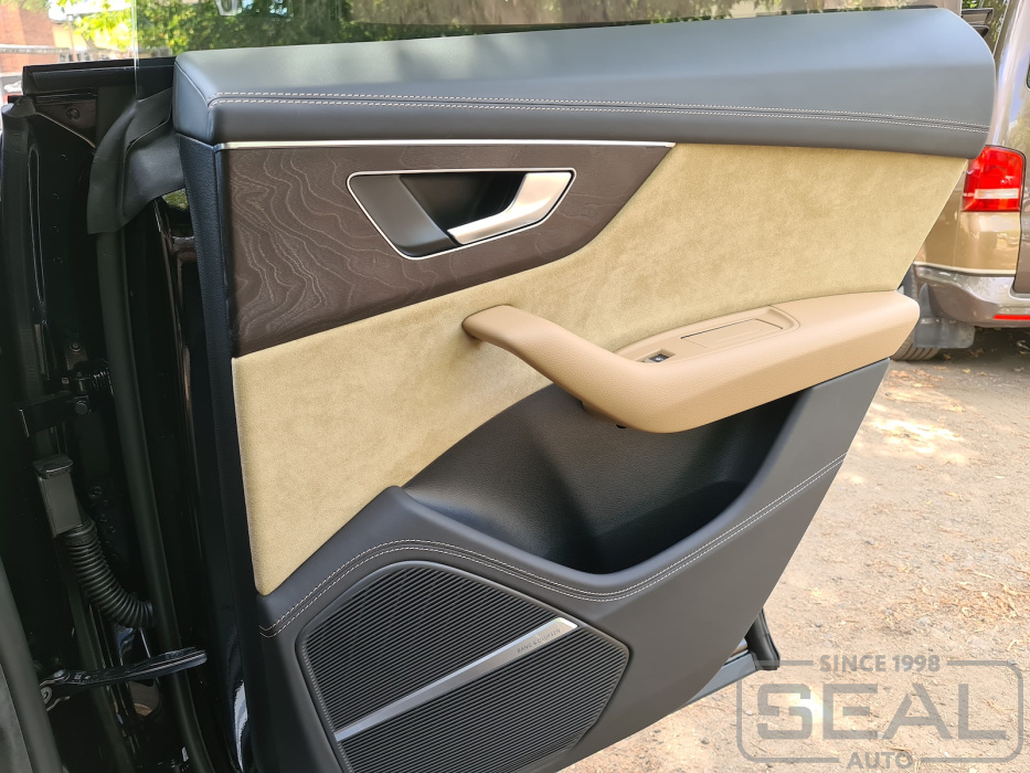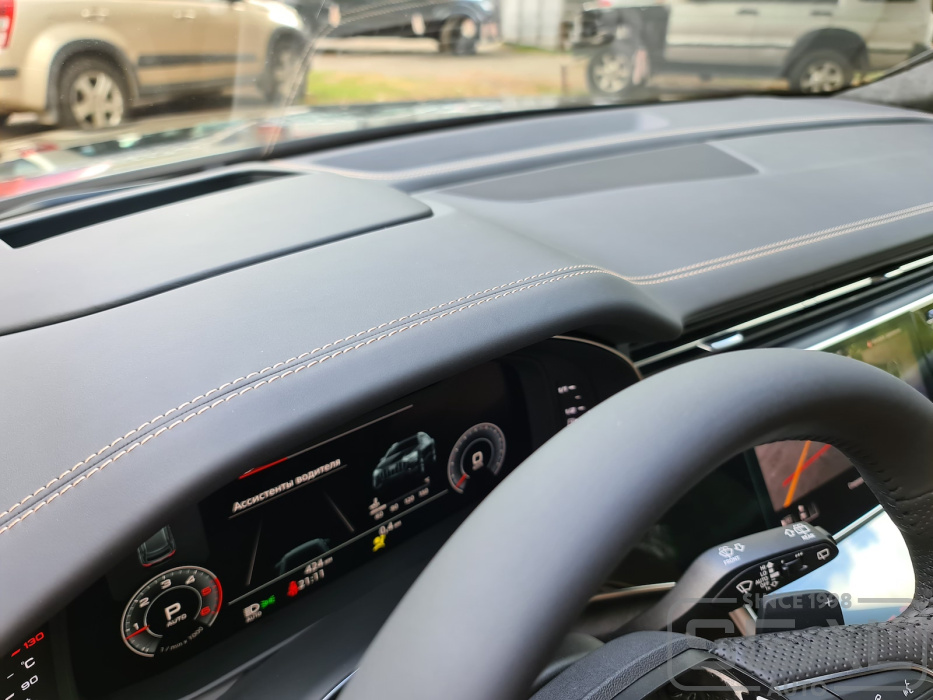 Проект по перетяжке верхней накладки торпедо и дверных панелей автомобиля Audi Q8.