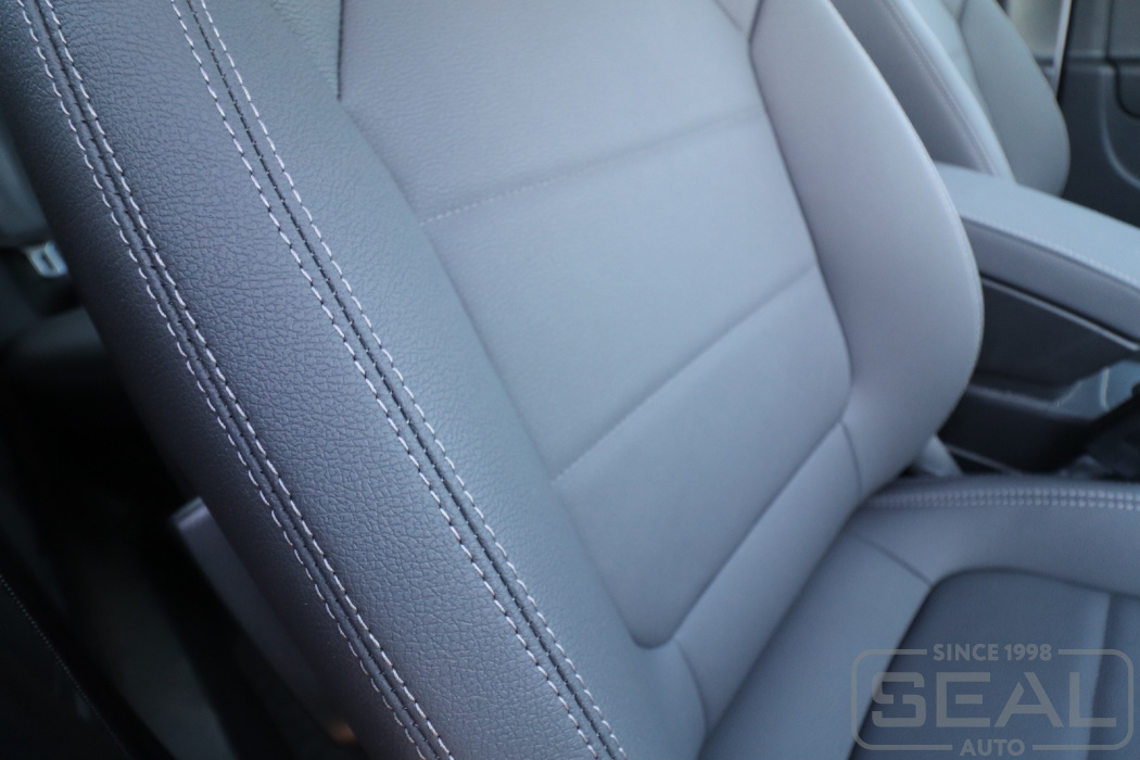 Перетяжка кожей сидений, подголовников и подлокотника - 82.000 рублей.