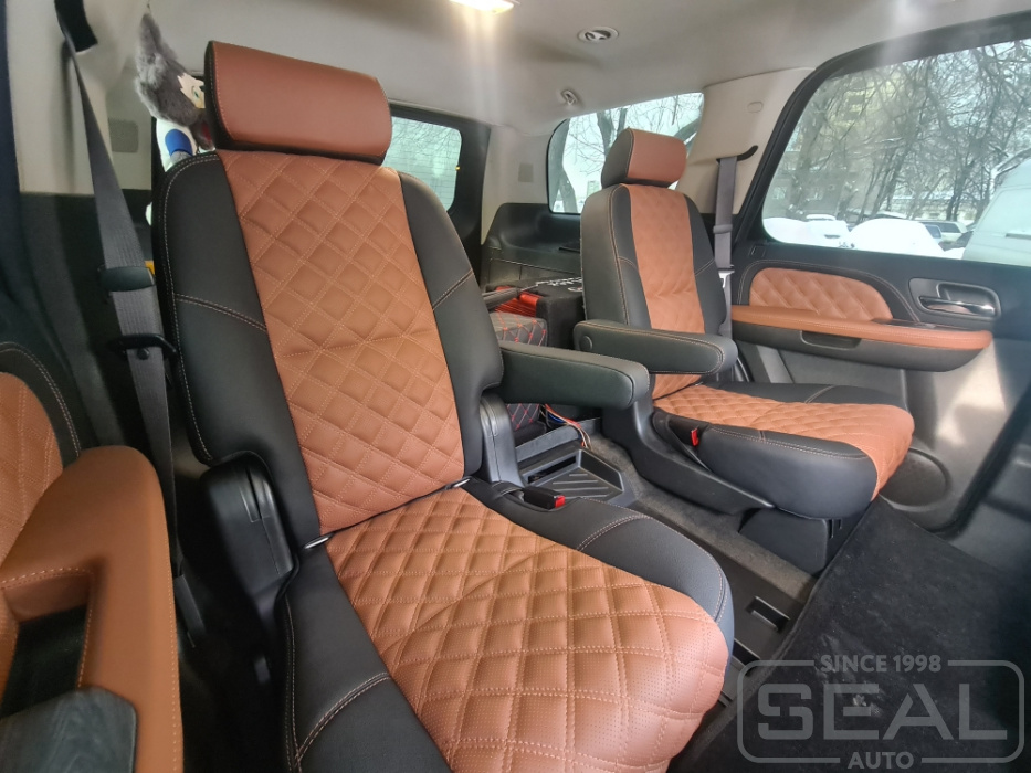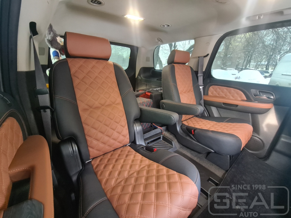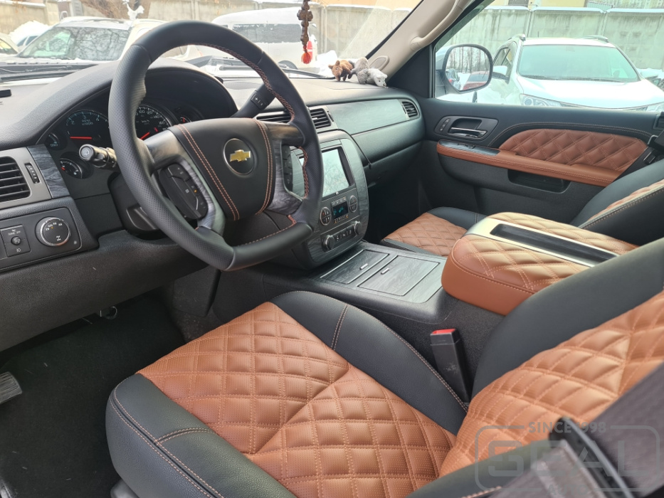 Работа по перетяжке салона автомобиля Шевроле Тахо (2 ряда сидений).