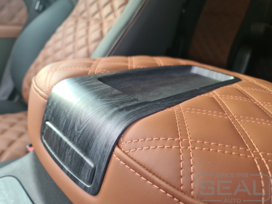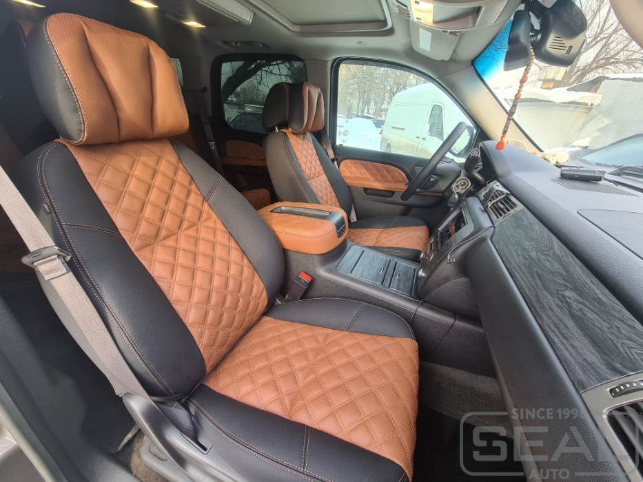 Перетяжка сидений (2 ряда), всех подголовников и переднего подлокотника - 104.000 рублей.