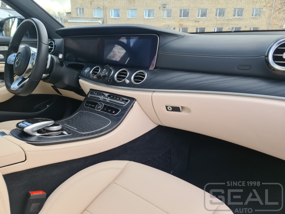 Работа по перетяжке торпедо и центральной консоли на автомобиле Мерседес E-класс 213 кузов.