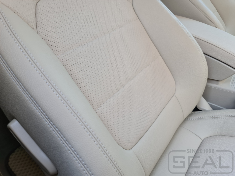 Перетяжка кожей сидений, подголовников и подлокотника - 82.000 рублей.