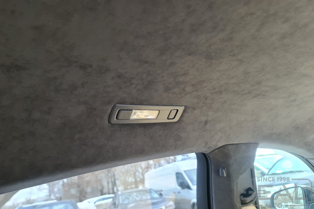 Перетяжка потолка, всех стоек и козырьков Алькантарой - 145.000 рублей.