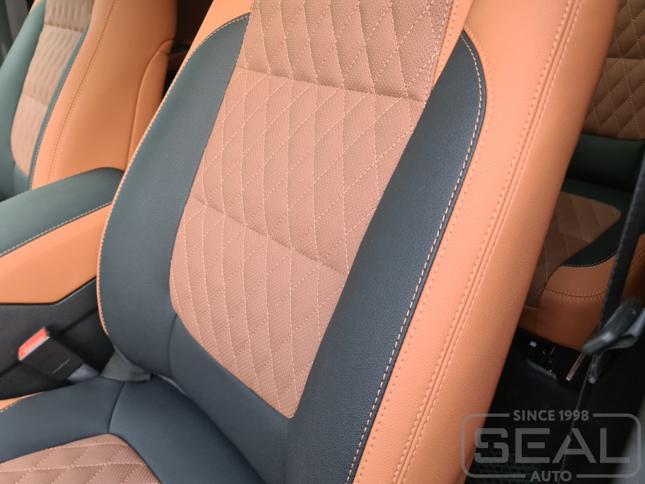 Перетяжка сидений, обивка подголовников и переднего подлокотника - 91.000 рублей.
