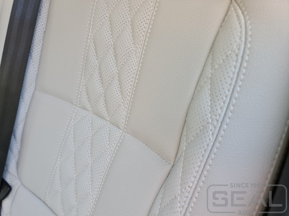 Перетяжка сидений, всех подголовников и переднего подлокотника - 87.000 рублей.