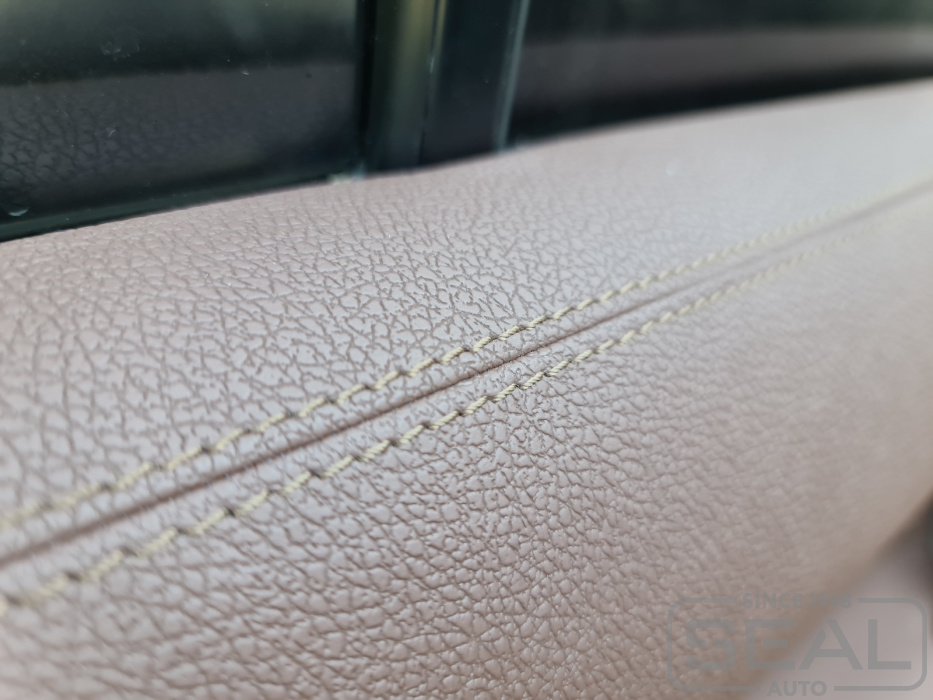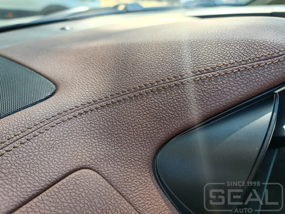 Перетяжка 2-х элементов центральной части торпедо из эко кожи - 14.000 рублей.