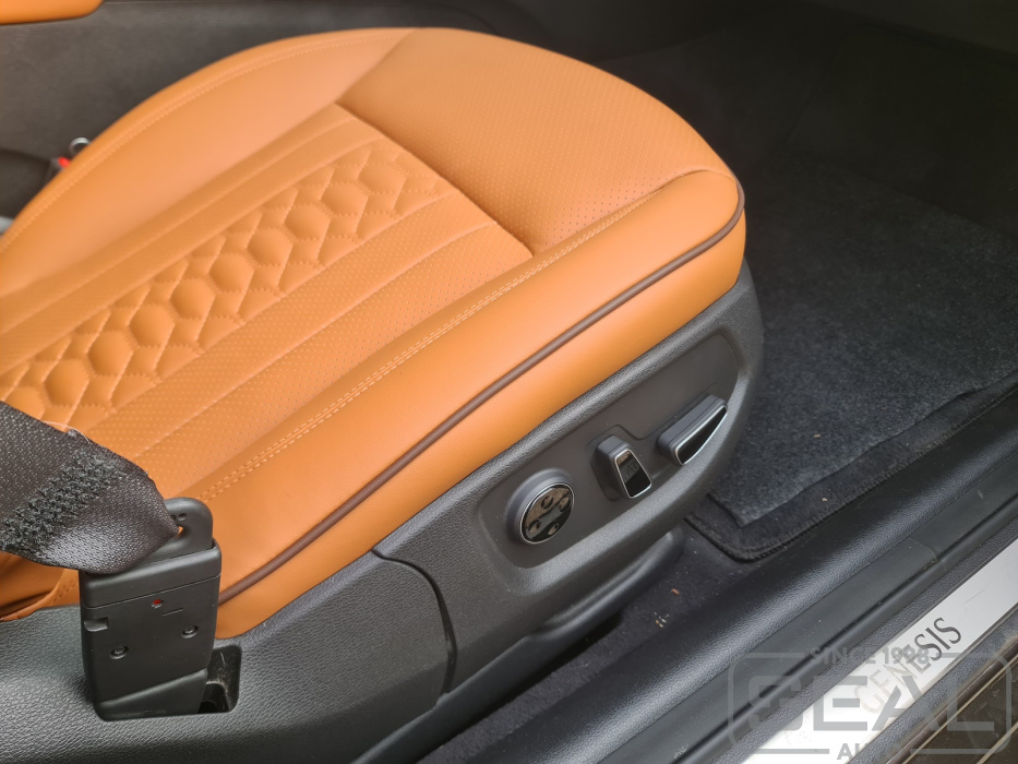 Перетяжка сидений, всех подголовников и заднего подлокотника - 95.000 рублей.