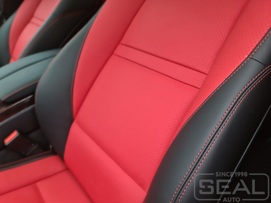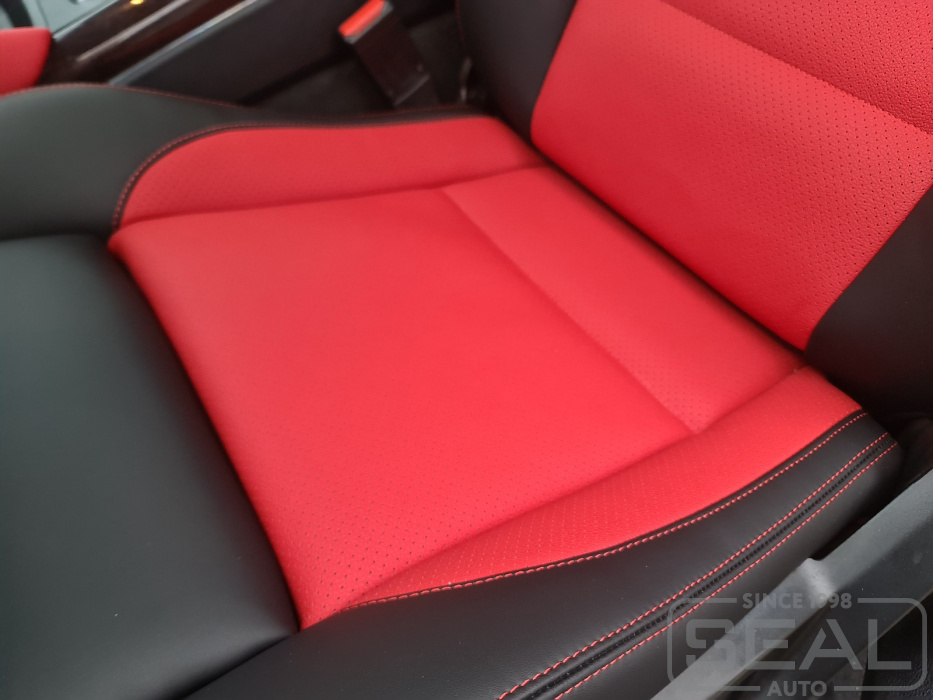 Перетяжка сидений, всех подголовников и заднего подлокотника - 94.000 рублей.