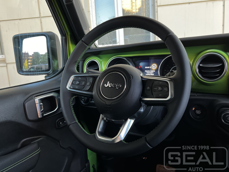 Работа по перетяжке руля автомобиля Джип Ренглер.