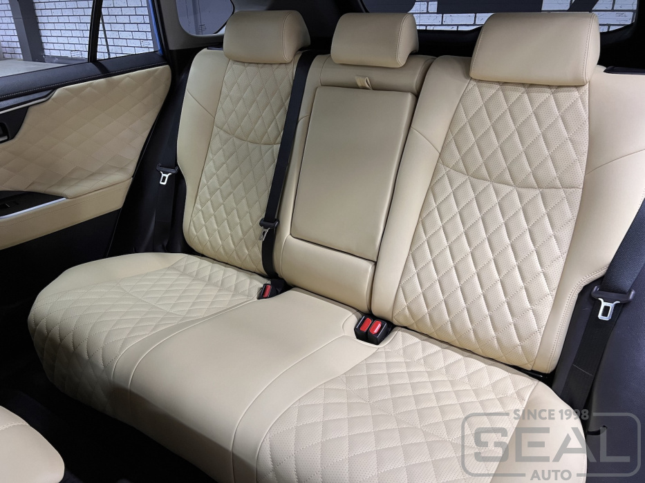 Перетяжка сидений, всех подголовников, заднего подлокотника - 88.000 рублей.