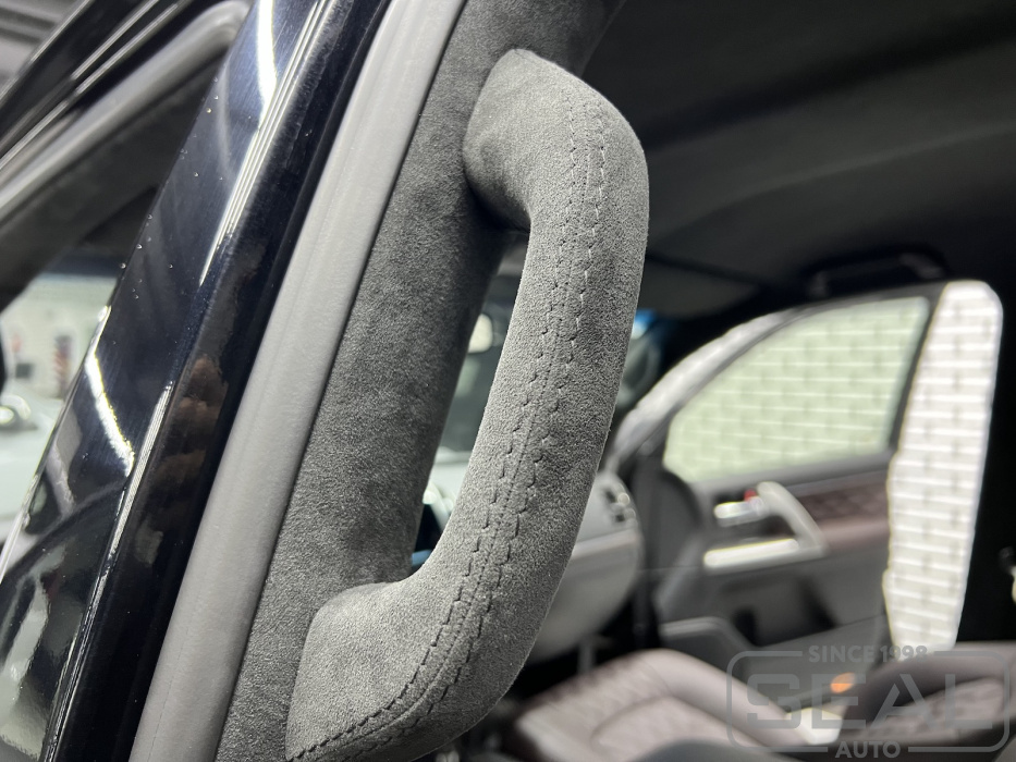 Перетяжка потолка, стоек с ручками и козырьков (Алькантара) - 141 000 ₽.