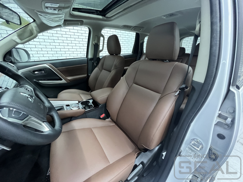 Работа по перетяжке салона Митсубиси Паджеро Спорт (3 ряда сидений).