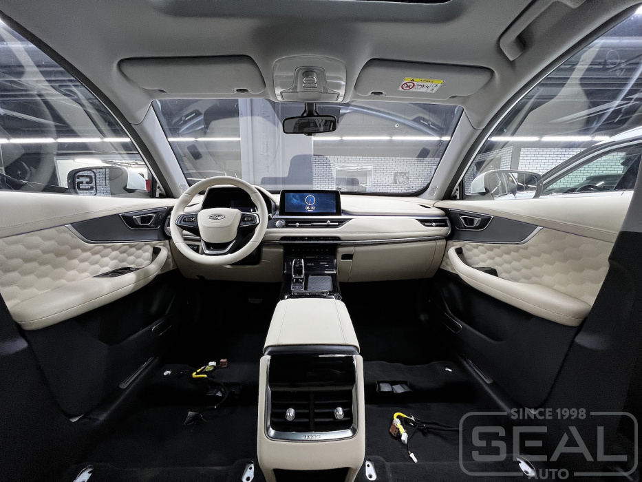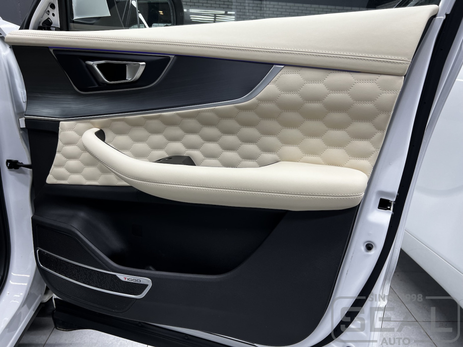 Проект по перетяжке торпедо, консоли и дверных панелей Chery Tiggo Pro7.