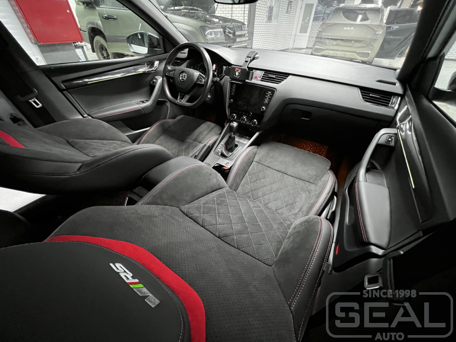 Работа по перешиву и шумоизоляции салона Шкода Октавия А7 (спорт сидения).