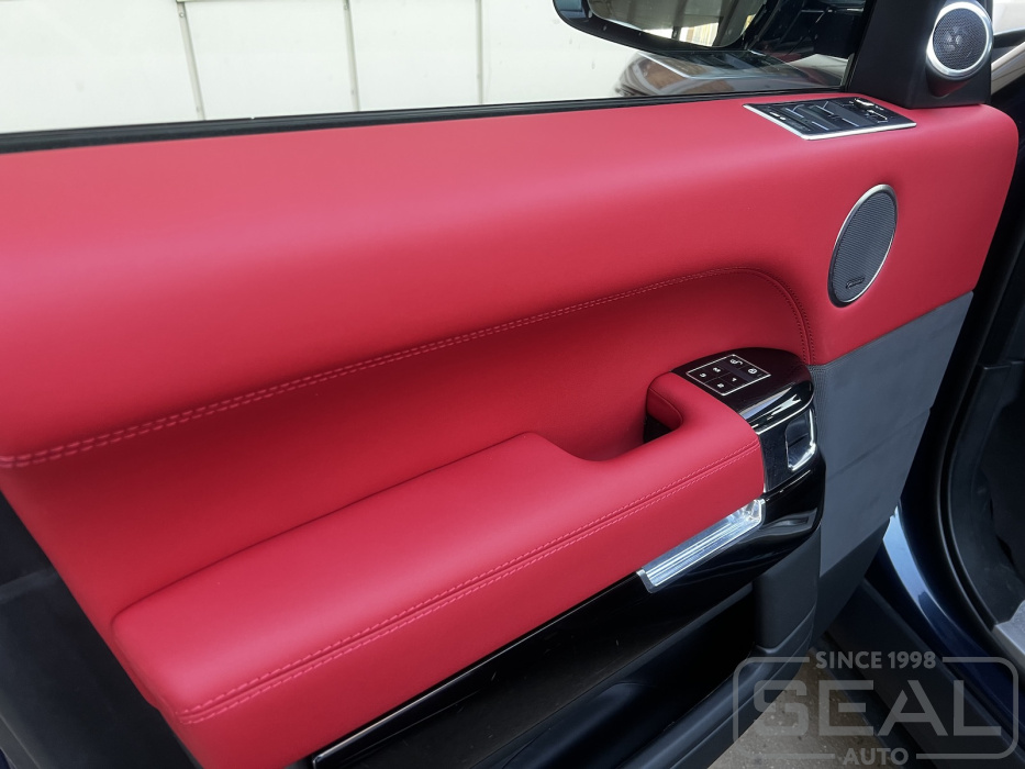 Работа по перетяжке торпедо и дверных панелей Рэнж Ровер Спорт.