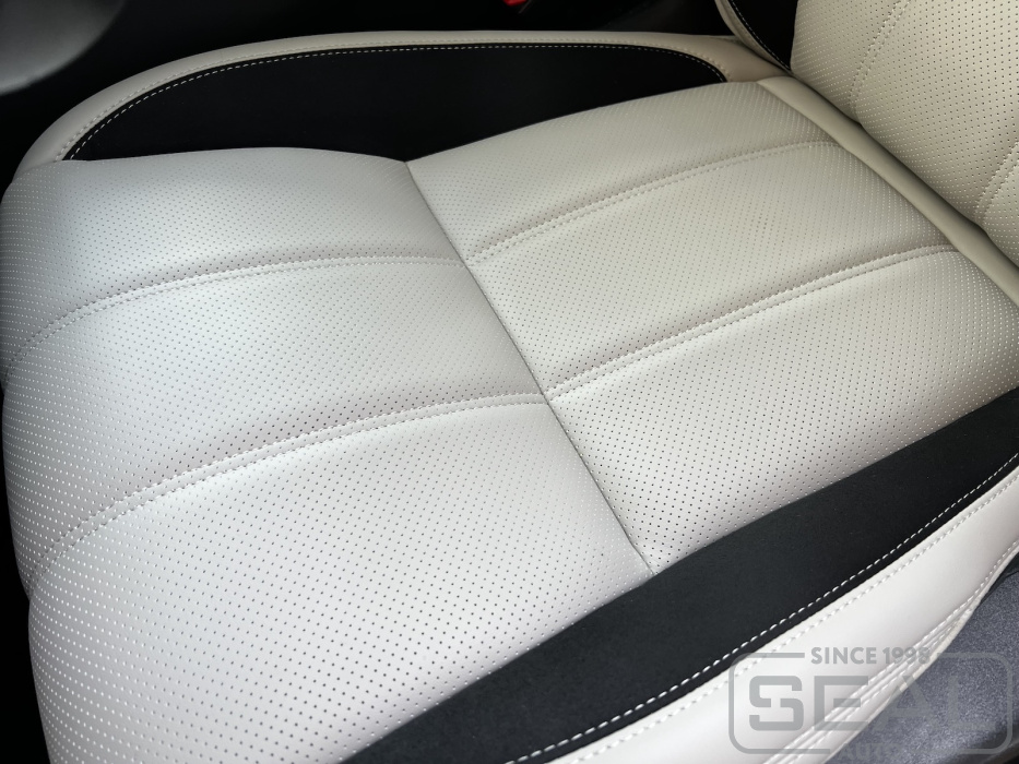 Перетяжка сидений, подголовников и переднего подлокотника - 104.000 рублей.