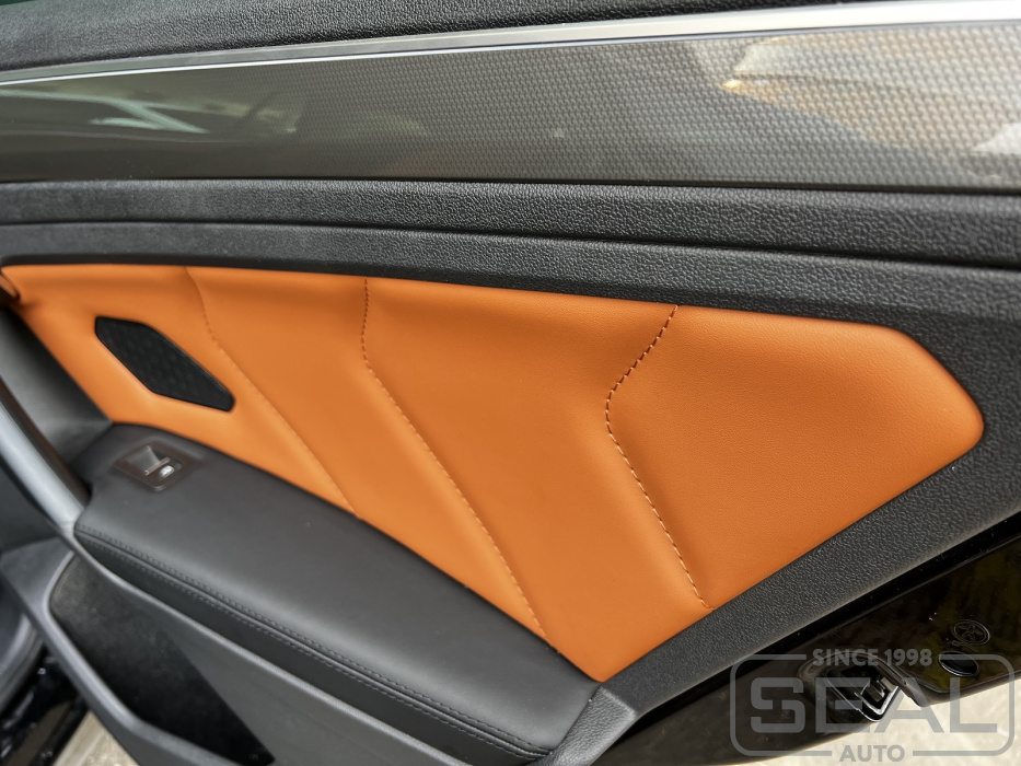 Перетяжка дверных карт и подлокотников со швом (комплект) - 44.000 рублей.