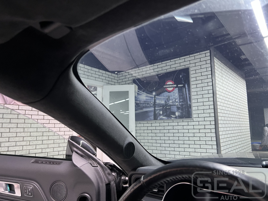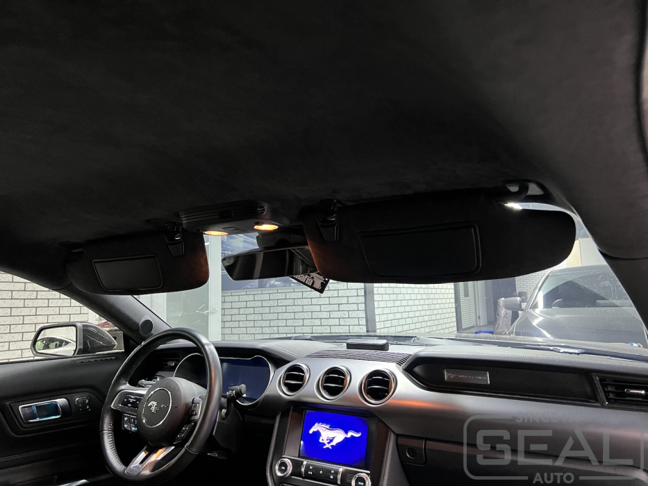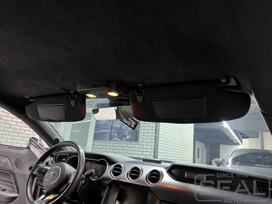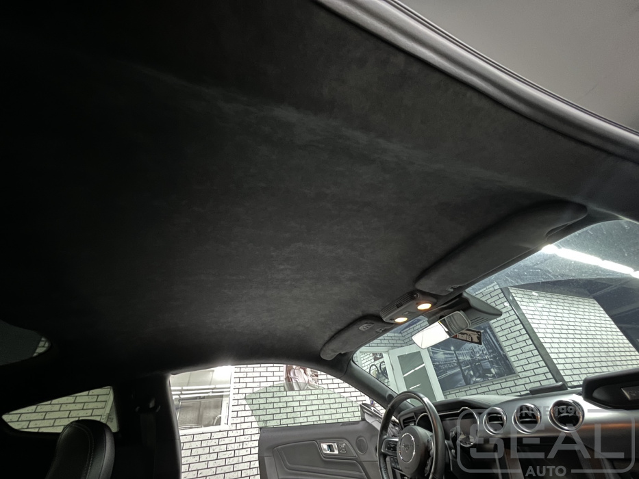 Услуга по перетяжке потолка алькантарой для Форд Мустанг.
