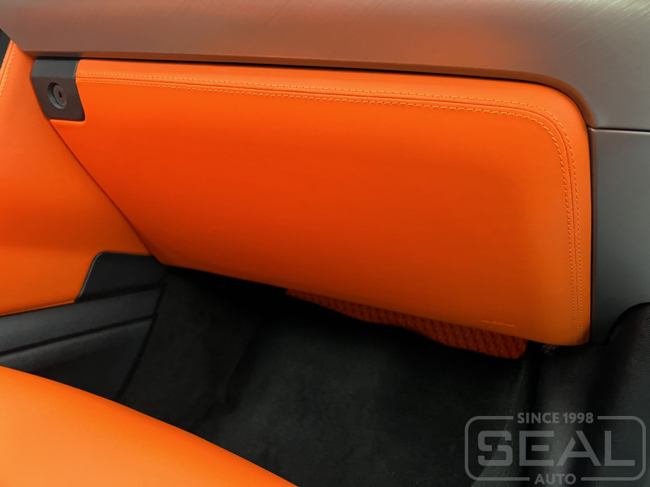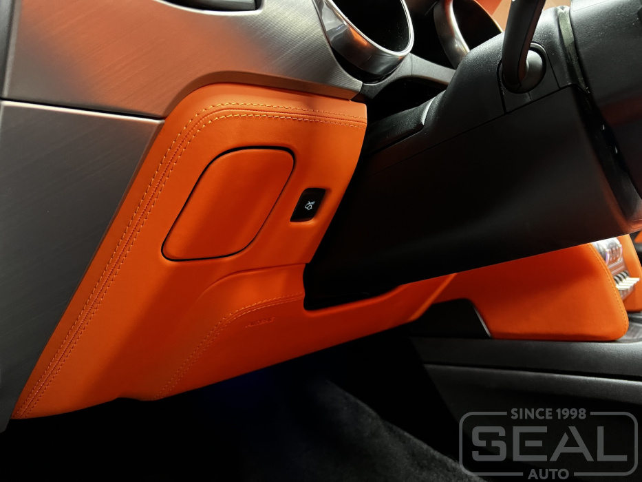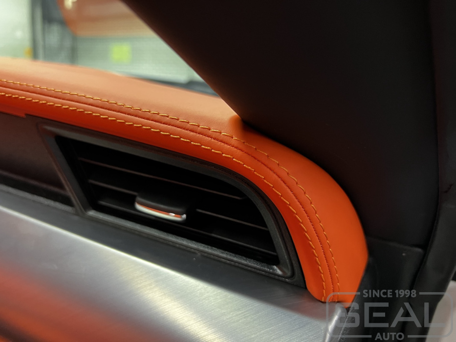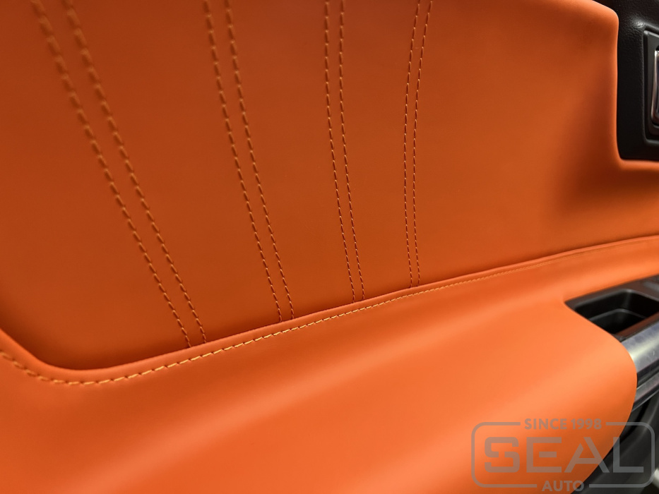 Работа по перетяжке торпедо, дверных карт и руля для Форд Мустанг.