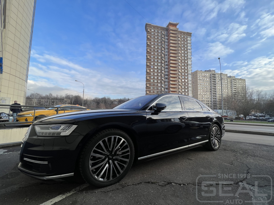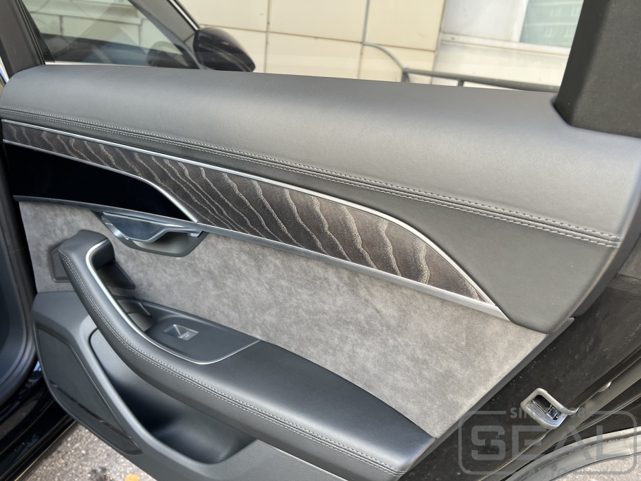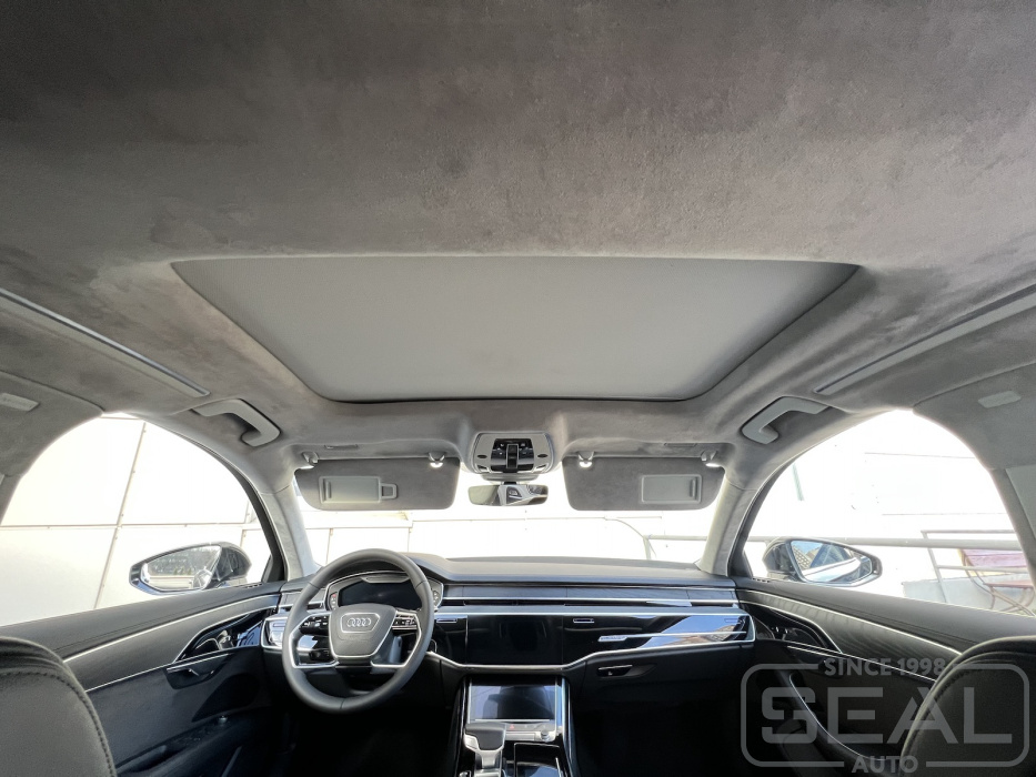 Проект по перетяжке торпедо, потолка и дверных панелей на Ауди А8.