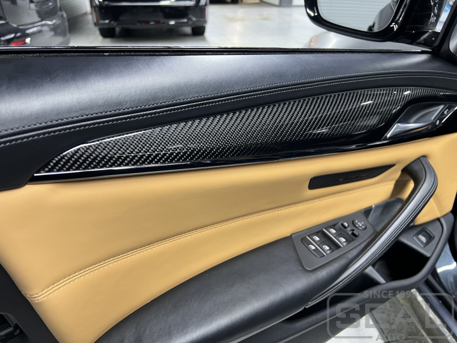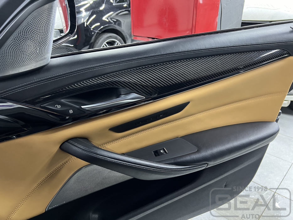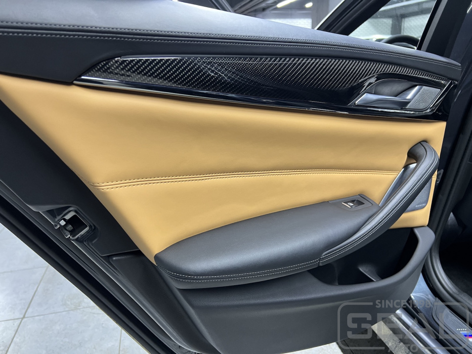 Работа по перешиву сидений, дверей и руля для автомобиля БМВ М5 (F90).