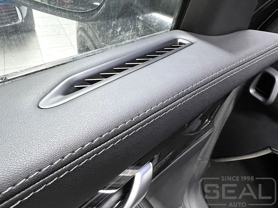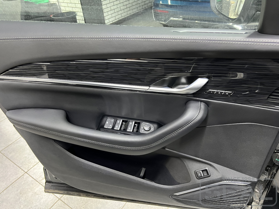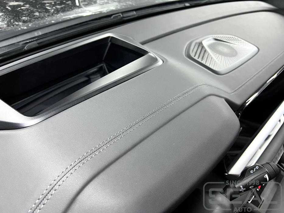 Работа по перетяжке торпедо, дверных панелей и консоли на Geely Monjaro.