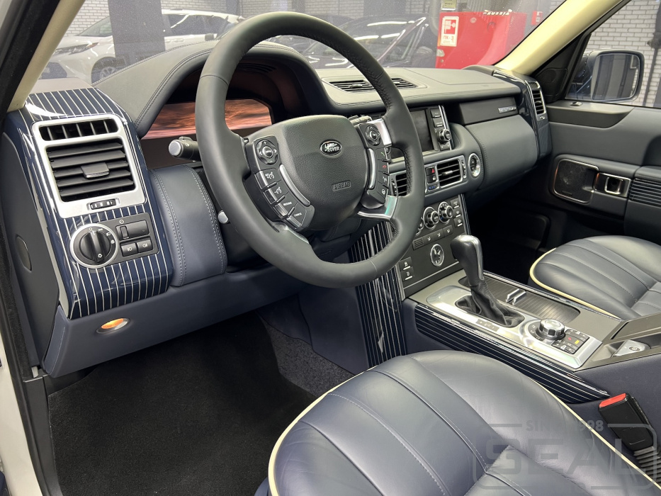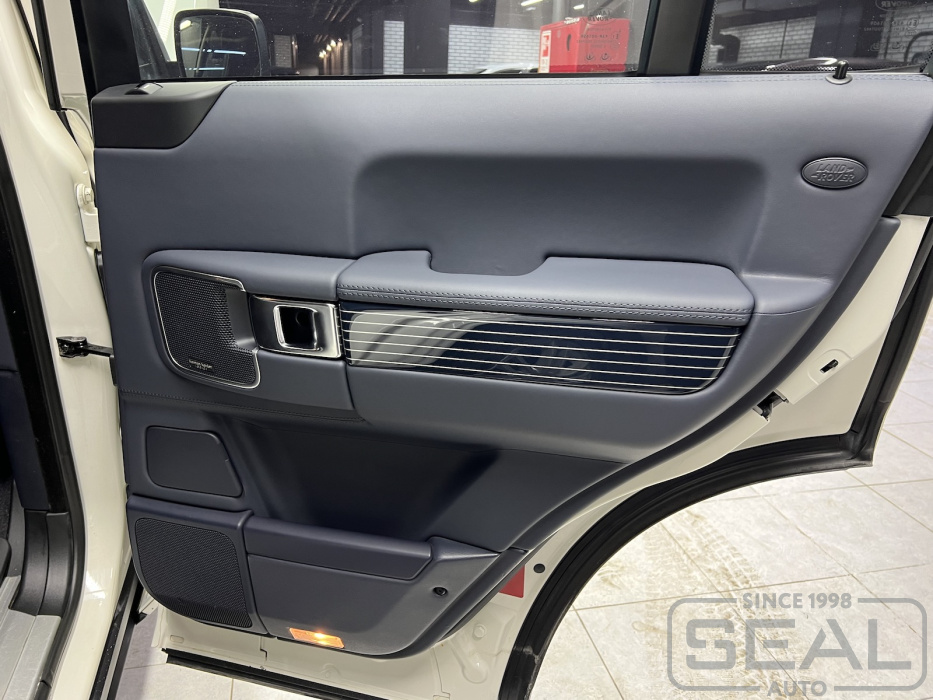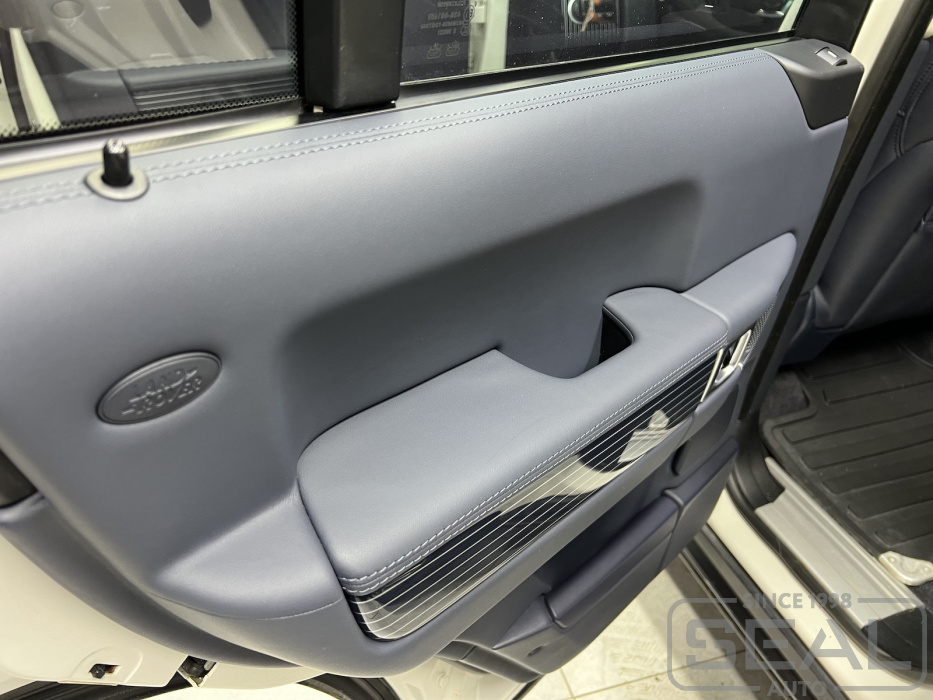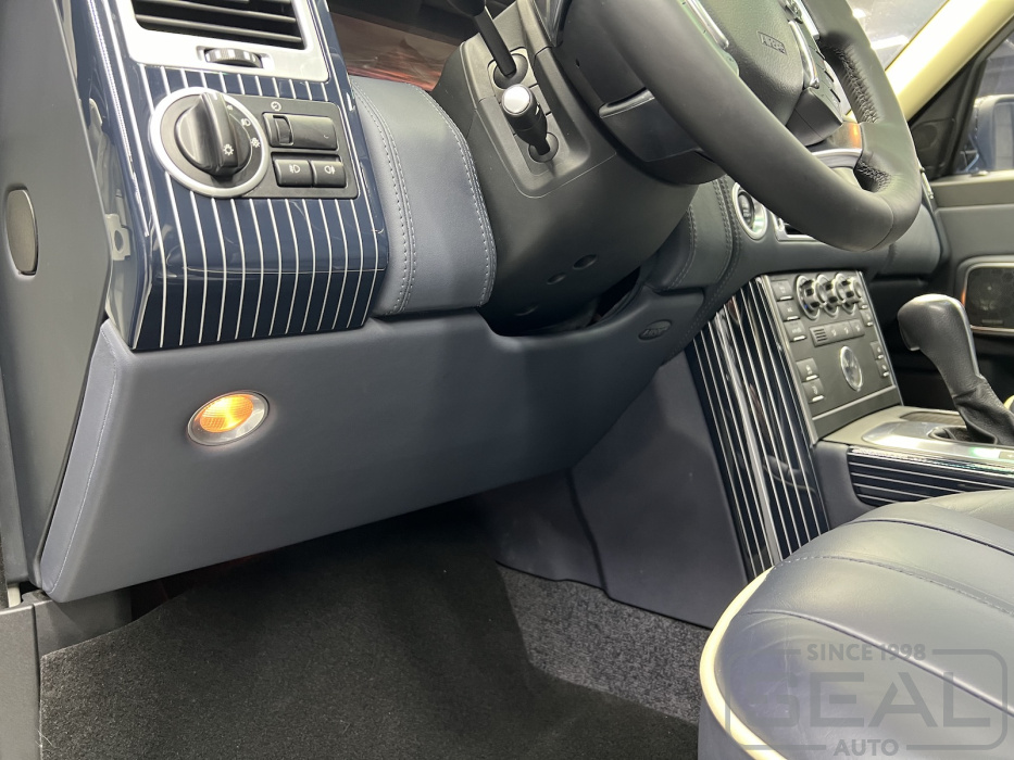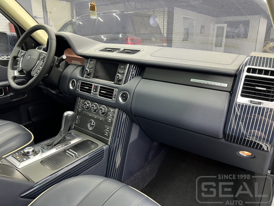 Работа по перетяжке торпедо и дверных панелей для Рэнж Ровер .