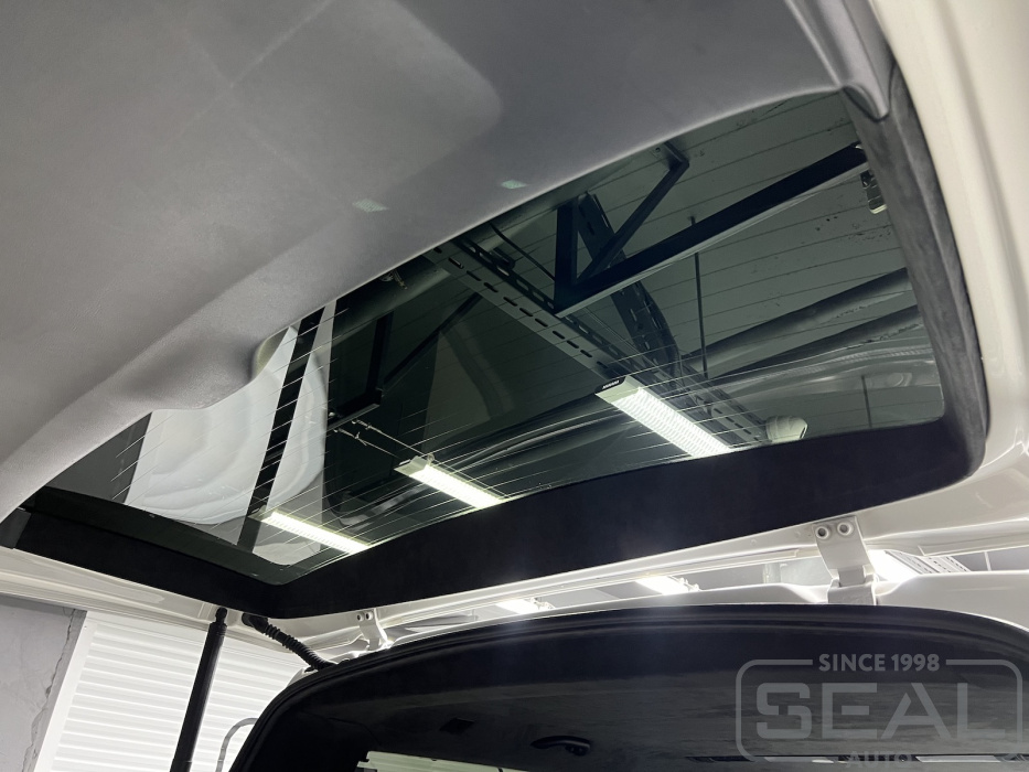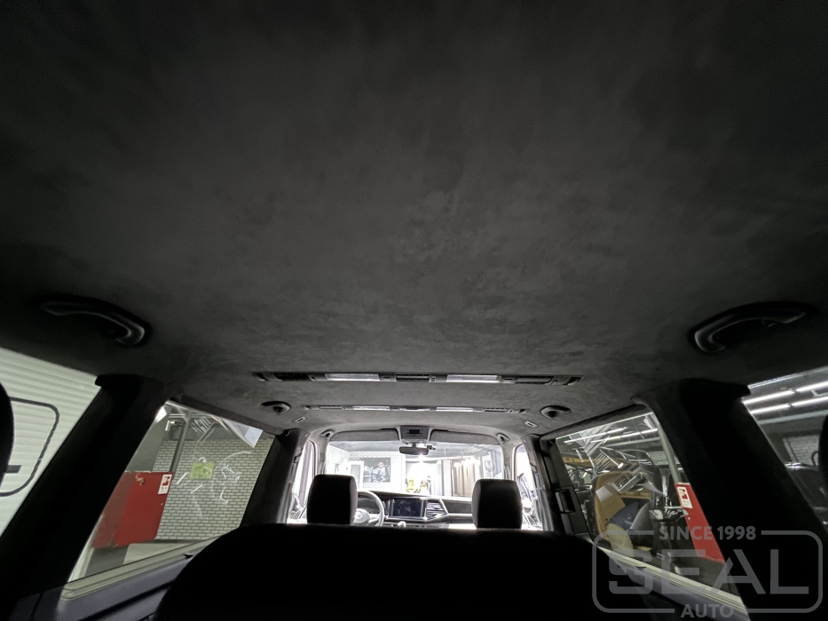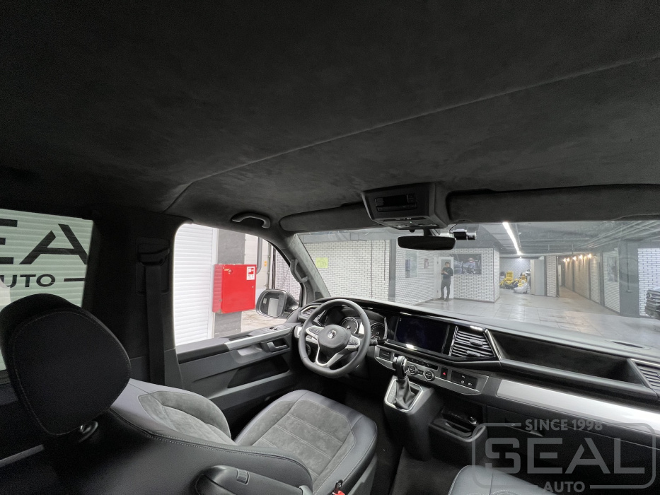 Проект по перетяжке потолка алькантарой автомобиля Фольксваген Каравэлла.