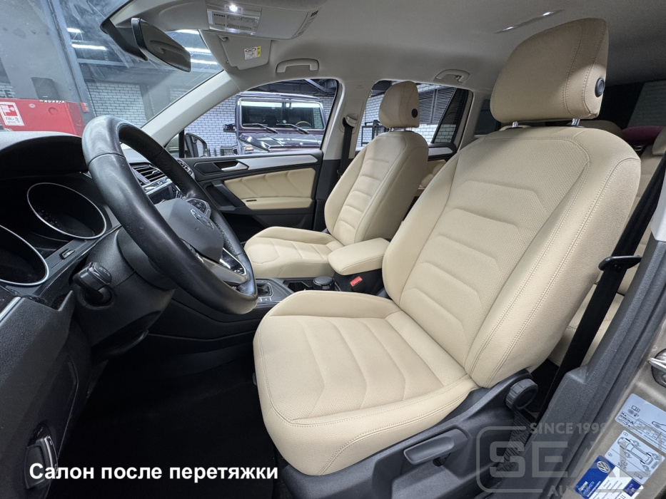 Время выполнения перетяжки салона Фольксваген Тигуан - один рабочий день по предварительной записи.