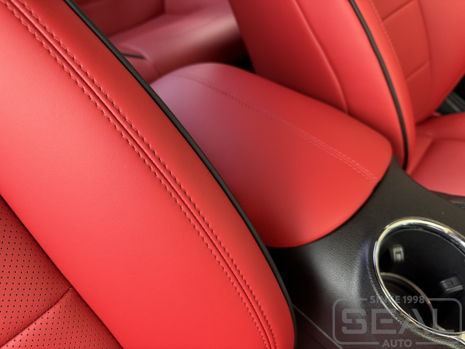 Перетяжка сидений, подголовников и центрального подлокотника - 90.000 рублей.