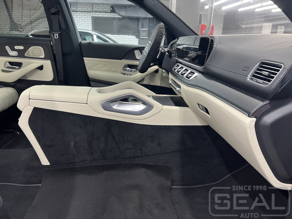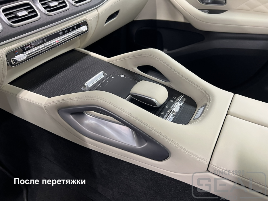 Работа по перетяжке торпедо и центральной консоли на автомобиле Мерседес GLS.