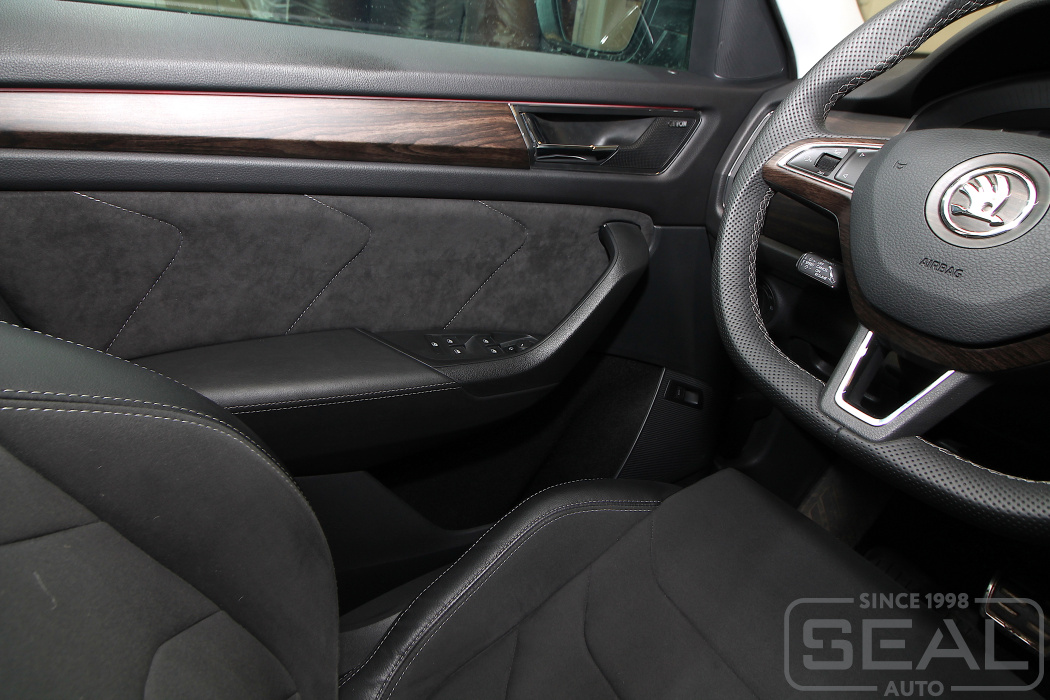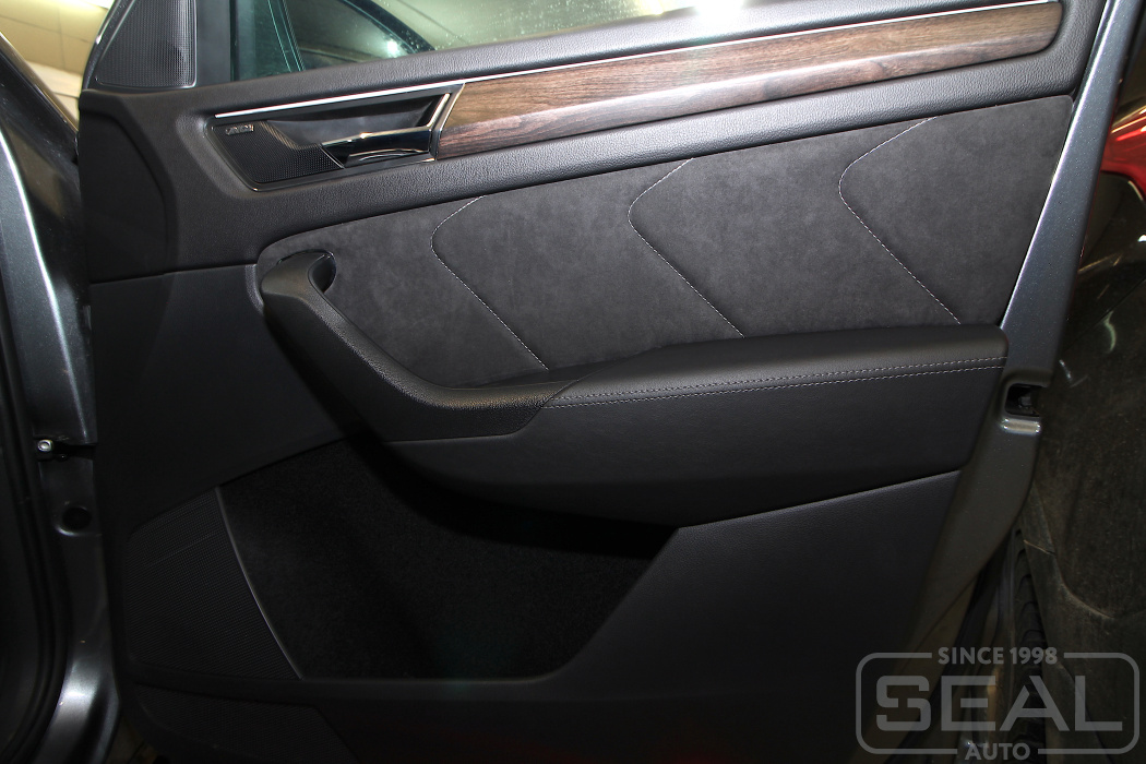Перетяжка панелей дверей на Шкода Кодиак.