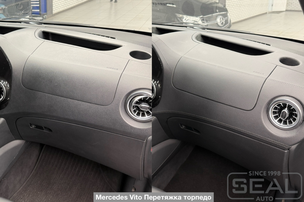 Перетяжка торпедо и панелей дверей Мерседес Вито (W447).