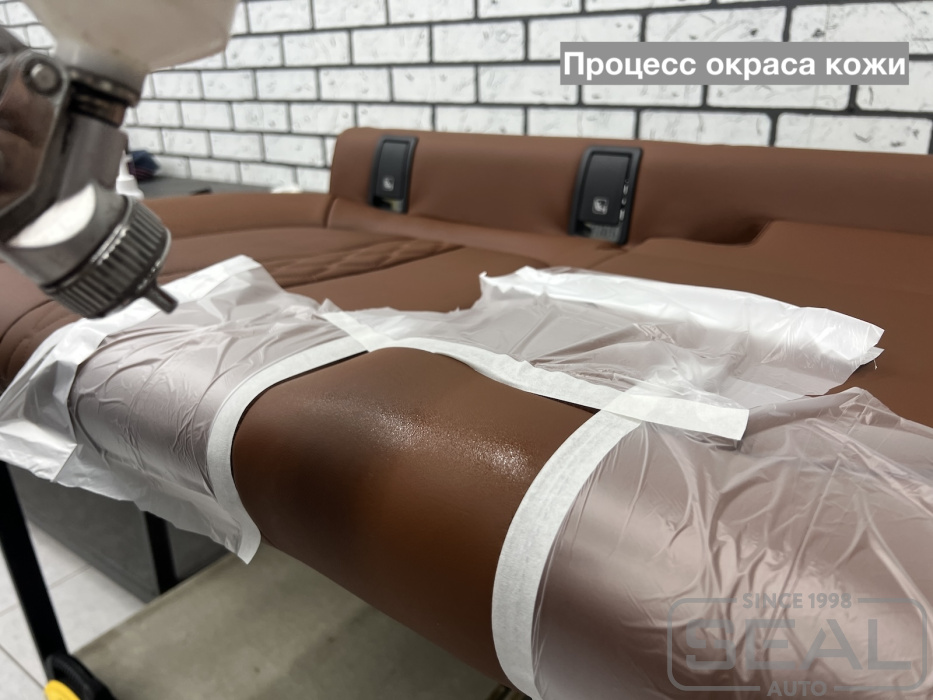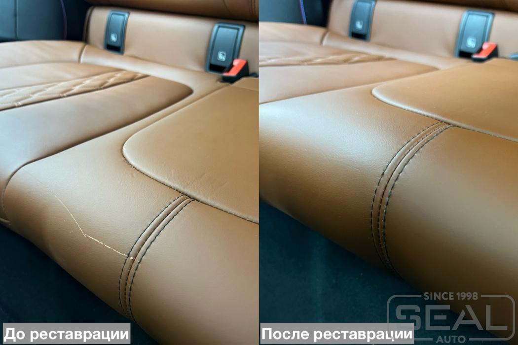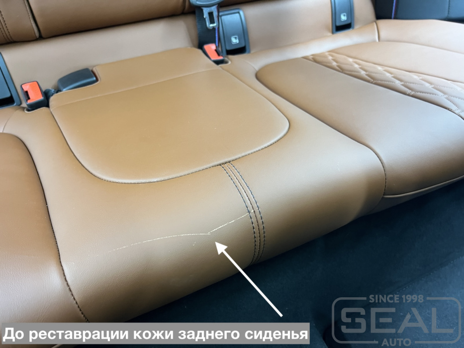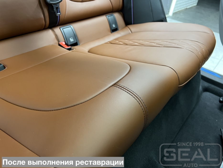 Услуга по реставрации кожаной обивки на заднем сиденье BMW X6.